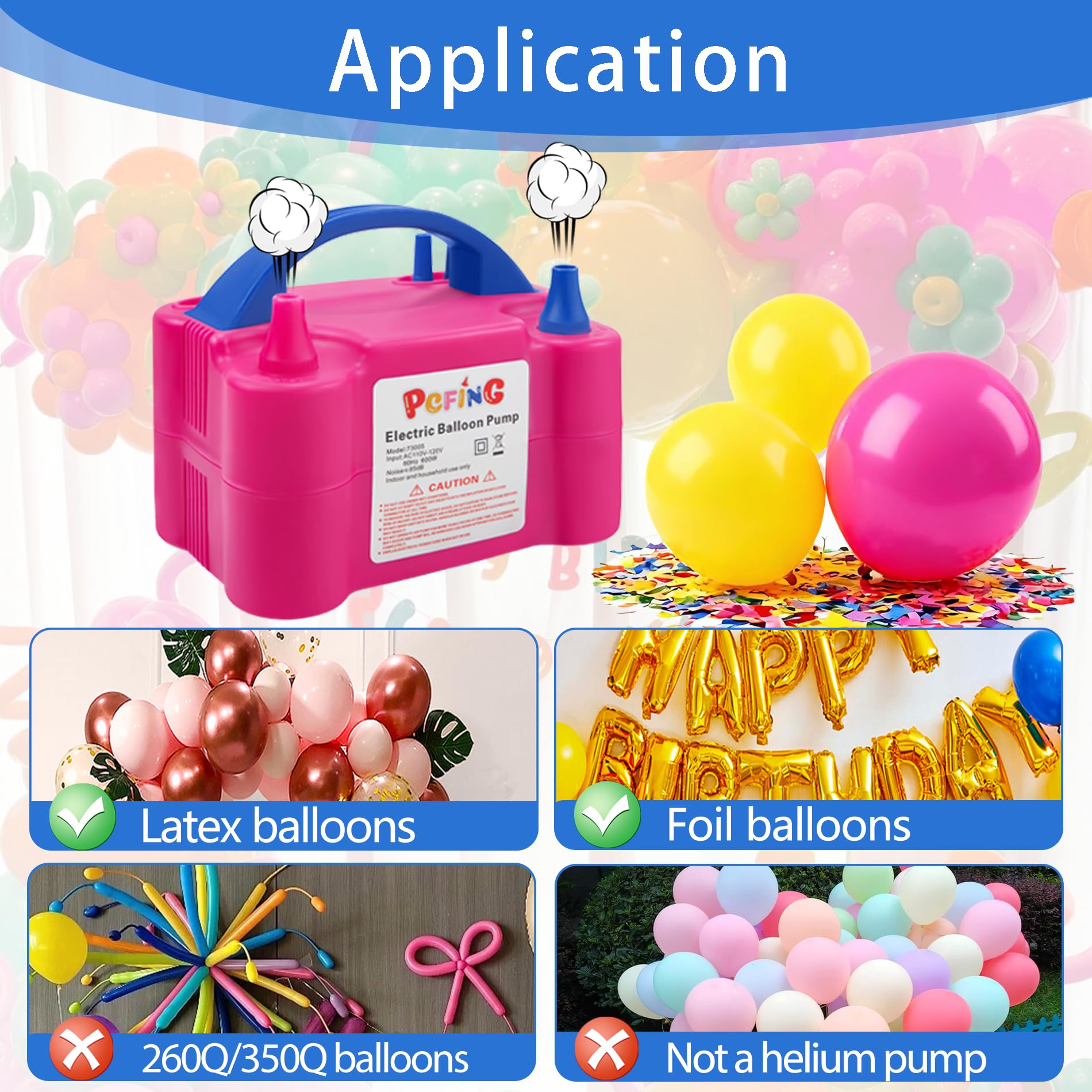[Notice] It's air electric pump for balloon,not helium. Suitable for latex balloons, double stuffed balloons(excludes 5 inch), aluminum foil balloons. Not suitable for 260Q balloons.