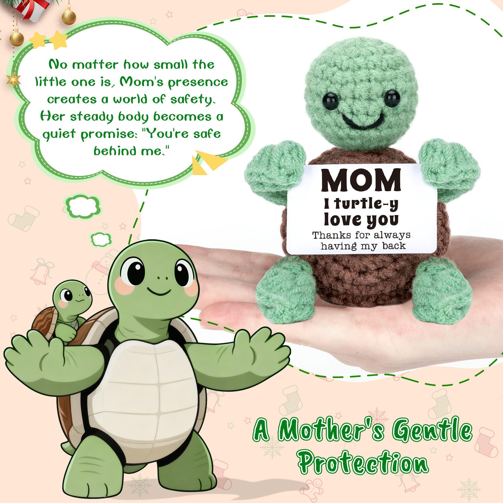 Gifts for Mom: Positive crochet turtles are made of yarn and handmade from soft wool yarn, with soft and comfortable touch; this mini turtle comes with a sweet "I turtle-y love you, Mom" card - a little reminder of your love for mom that she can keep close every day