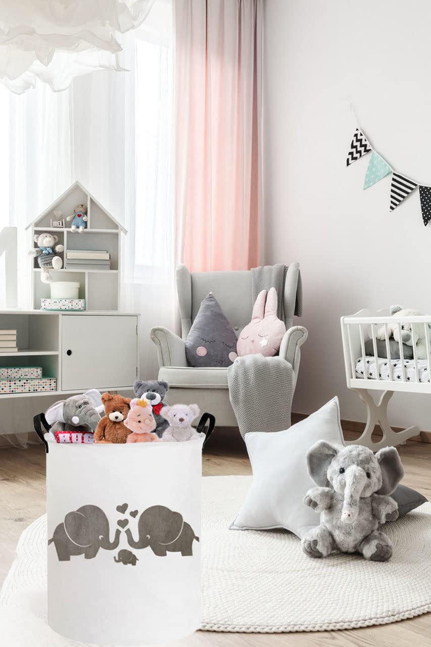 Product materials:85% cotton, 10% PE and 5% leather handles,perfect for nursery hamper,toy organizer.