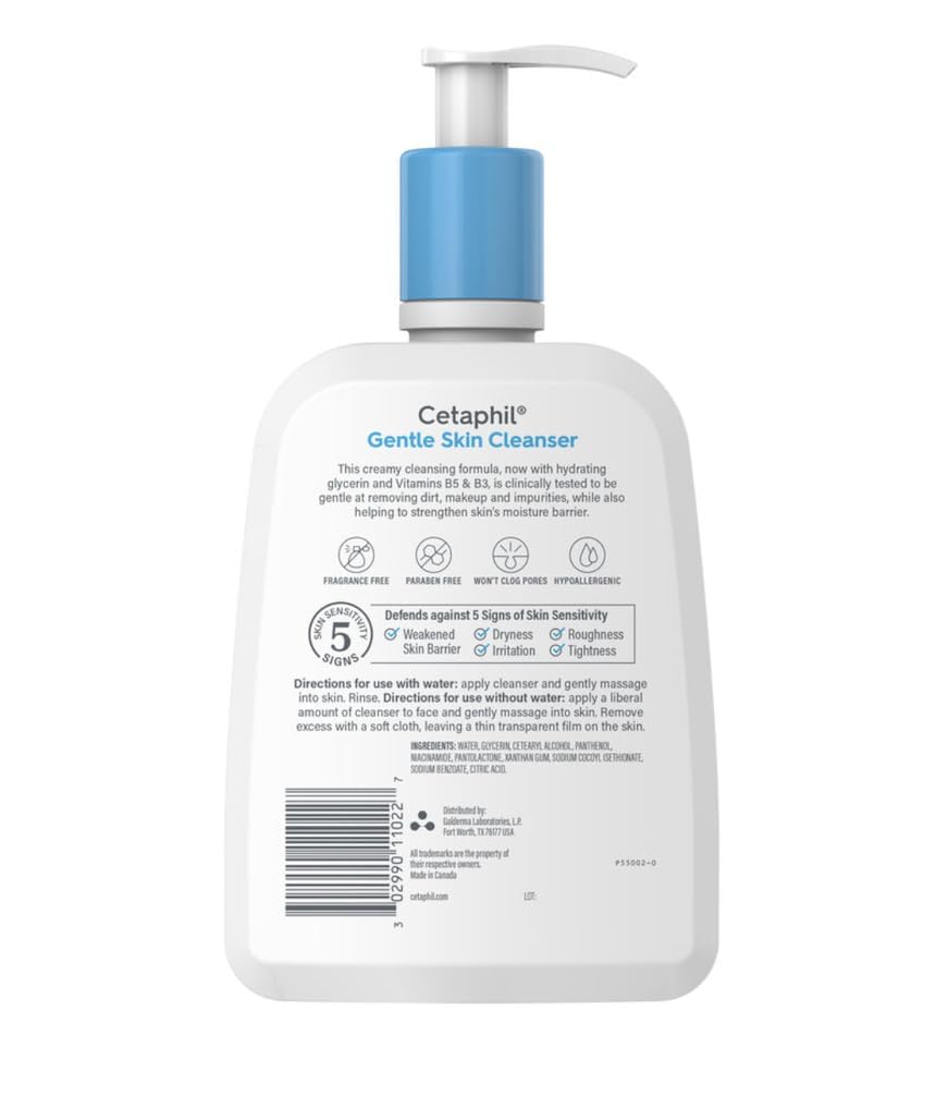 CETAPHIL Gentle Skin Cleanser is a creamy, non-foaming daily cleanser for all skin types, ideal for dry, sensitive skin. This gentle yet effective face wash cleans deep to remove dirt, makeup and impurities without over drying or stripping the skin, helping to maintain the skin's natural pH balance. It hydrates and soothes as it cleans to replenish the skin's natural moisture barrier, without leaving a residue that can clog pores. Hypoallergenic, soap free and fragrance free to clean without irritation, leaving skin feeling soft and smooth. Clinically tested for even the most sensitive skin.