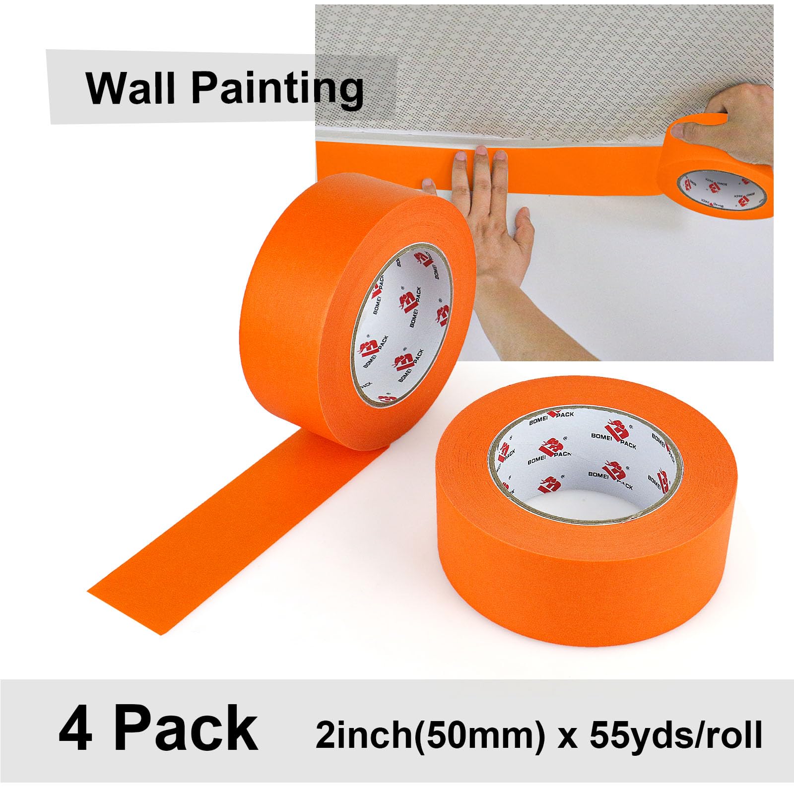 Clean and Sharp Paint Lines - BOMEI PACK Orange Painter’s Tape will help you create a perfect edge in all types of painting, trimming, edging, masking and protective applications. Great balance of strength, flexibility, durability, and removability. Contains crepe paper backing to prevent paint bleed, yet removes cleanly without damage. You’ll always get a perfect edge when you use it to create a border for painting or caulking jobs
