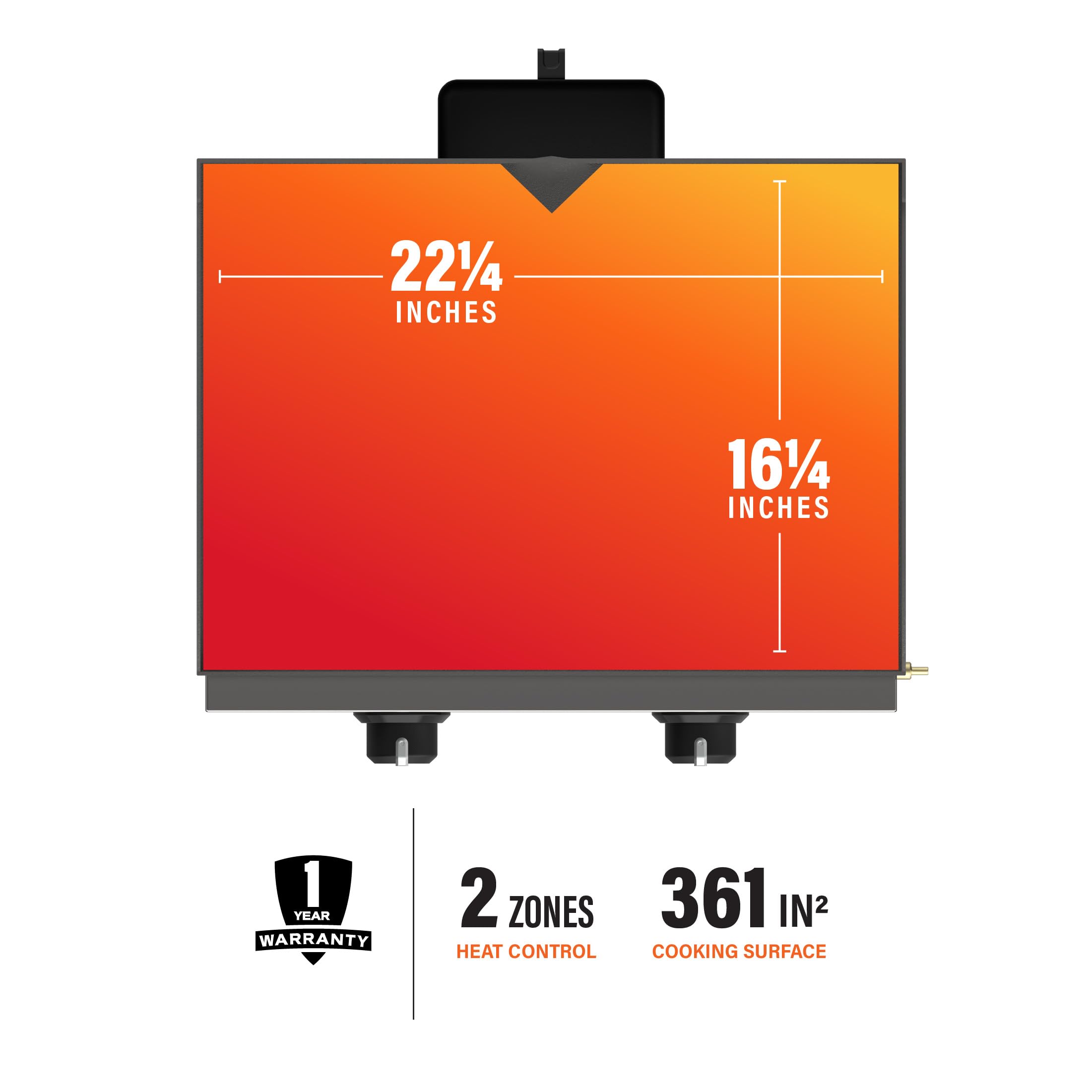Surprising Cooking Space: Make up to 14 burgers, 10 pancakes, or 60 hot dogs using this griddle’s 361 square inches of cooking space. Despite its compact design, this griddle is perfect for small families or groups.