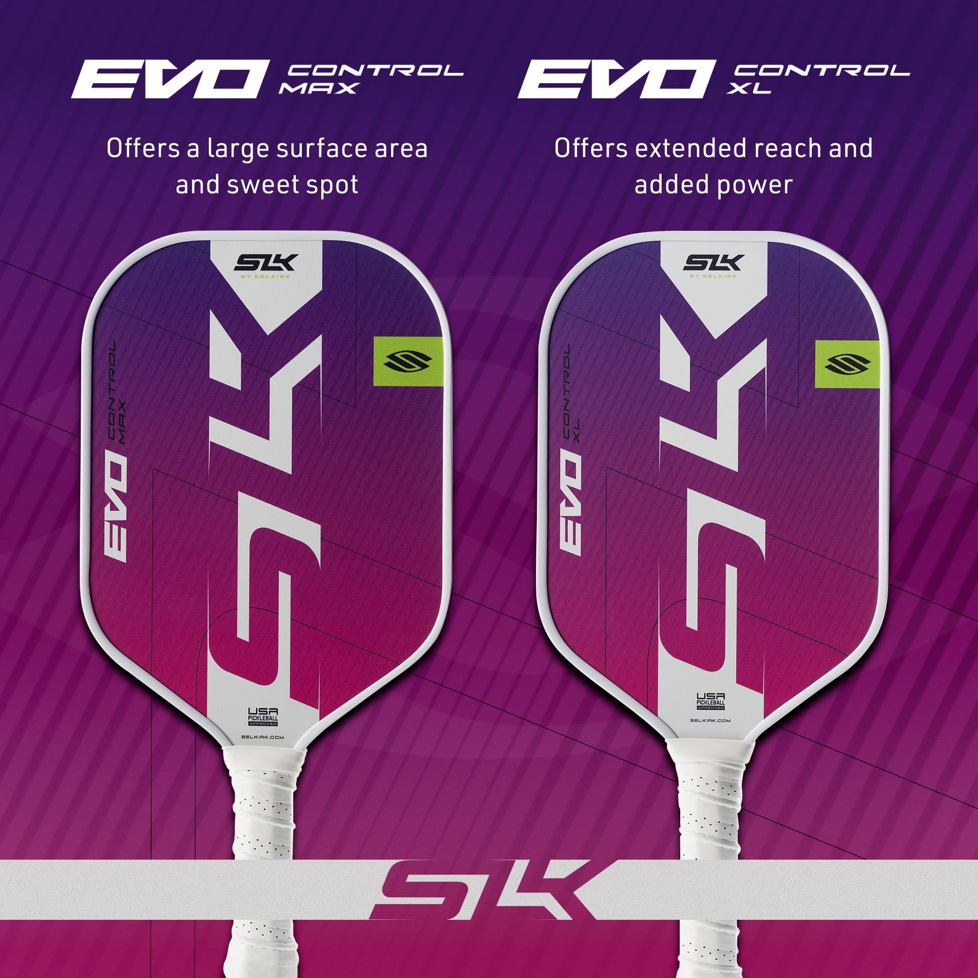 TWO DYNAMIC SHAPES: The MAX shape provides a wider surface area and standard grip length, expanding the sweet spot and offering balanced gameplay. The XL shape caters to those who prefer an elongated face with an extended grip for enhanced maneuverability.