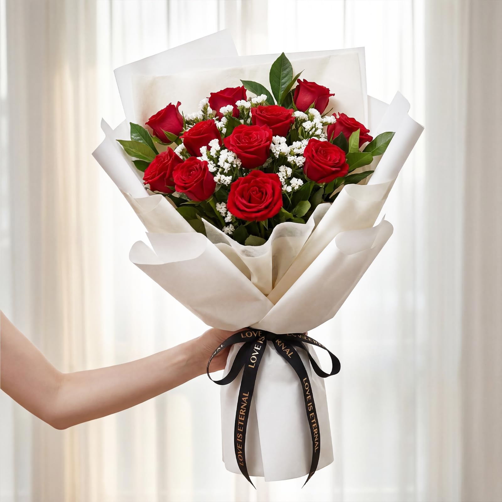 【Elegant Design】Classic pure white design,new and charming color lines make the whole bunch of flowers full of fashion design.smooth and comfortable to touch,makes wrapping paper more noble.