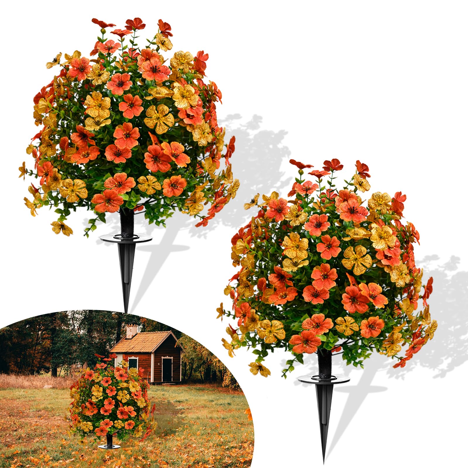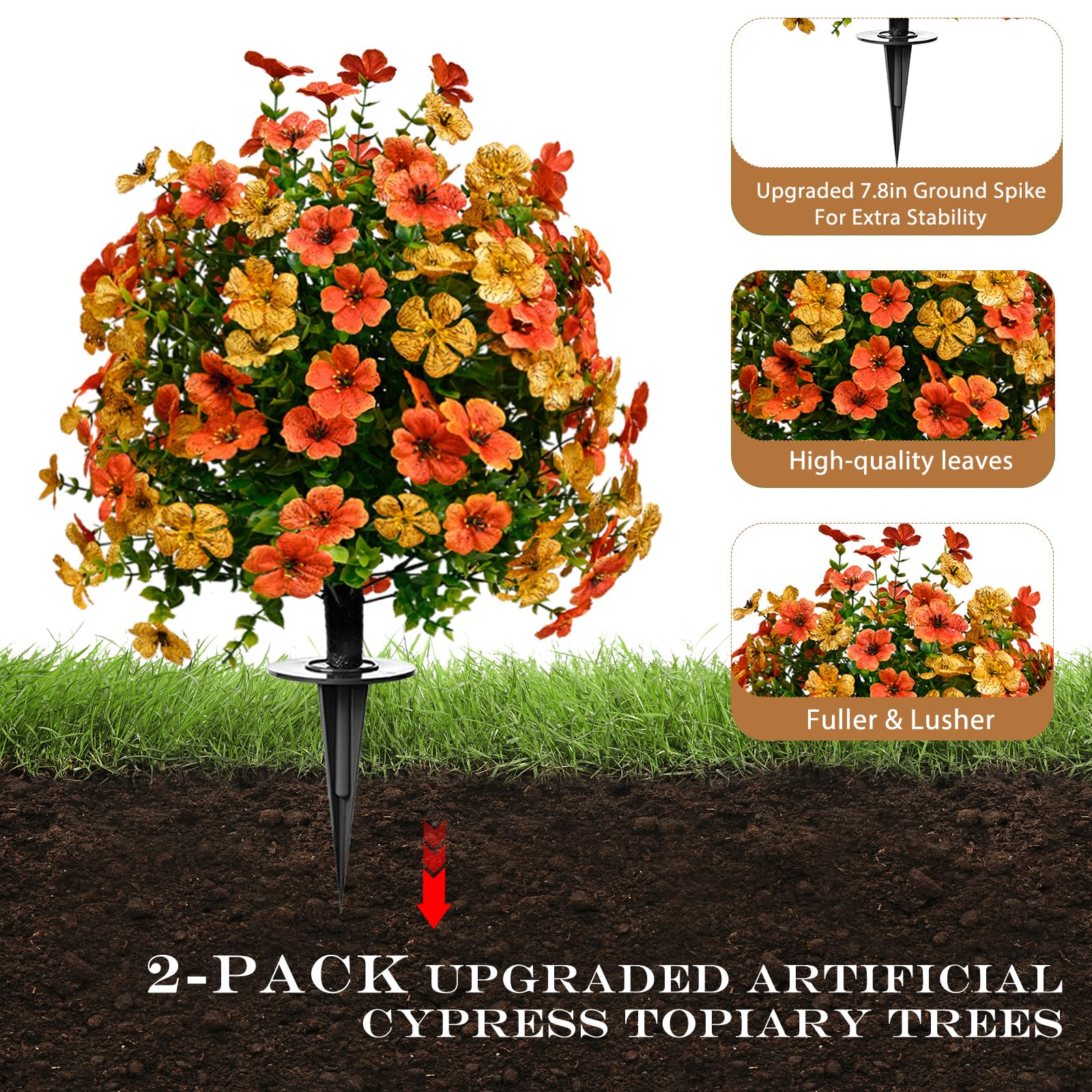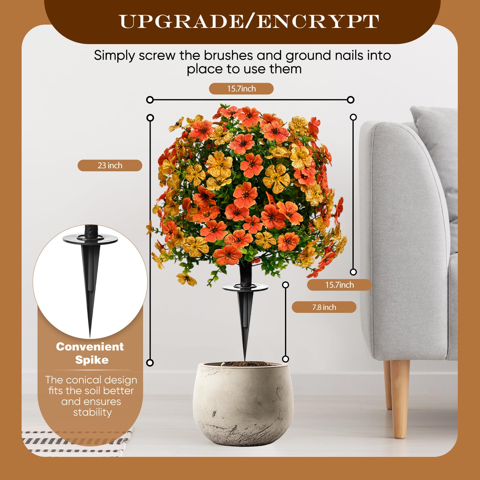 Artificial Topiary Bushes for Outdoors with 7.8” Spike, Orange Boxwood Ball Fake Shrubs UV Resistant Faux Plants for Indoor Outdoor Fall Thanksgiving Halloween Decor