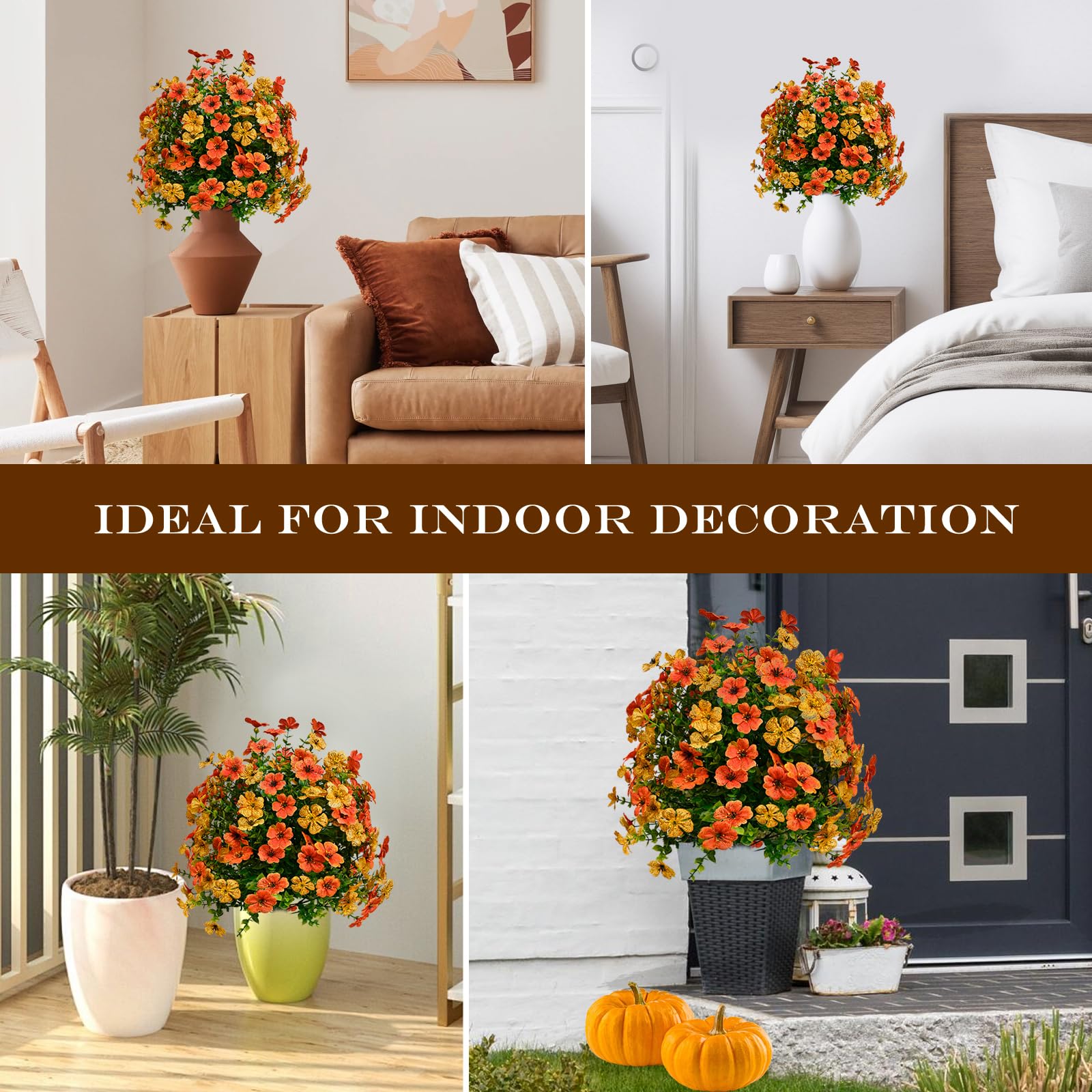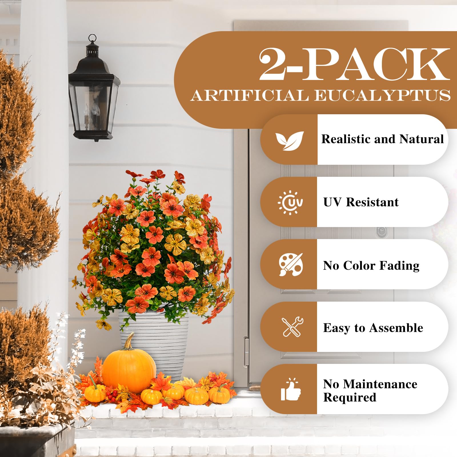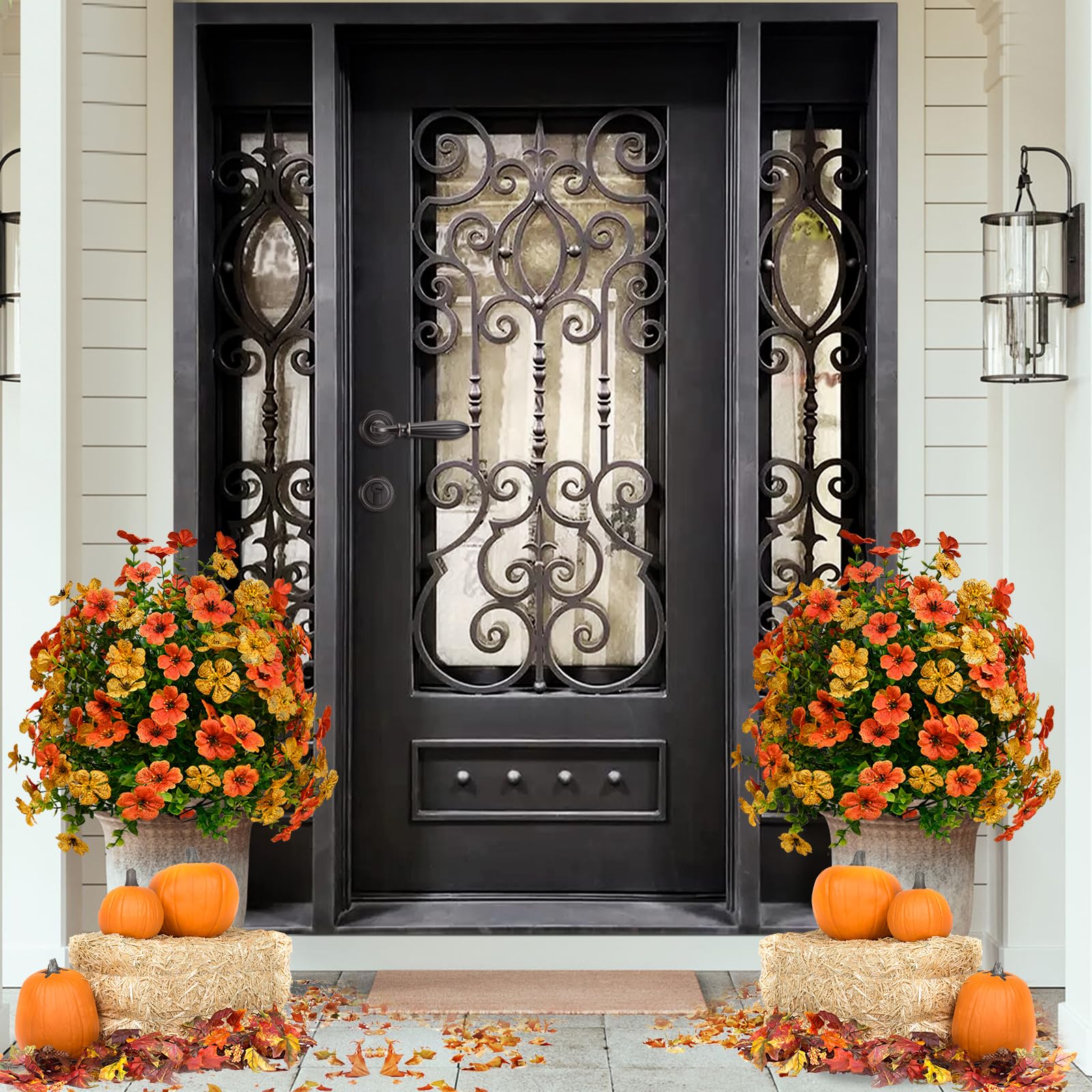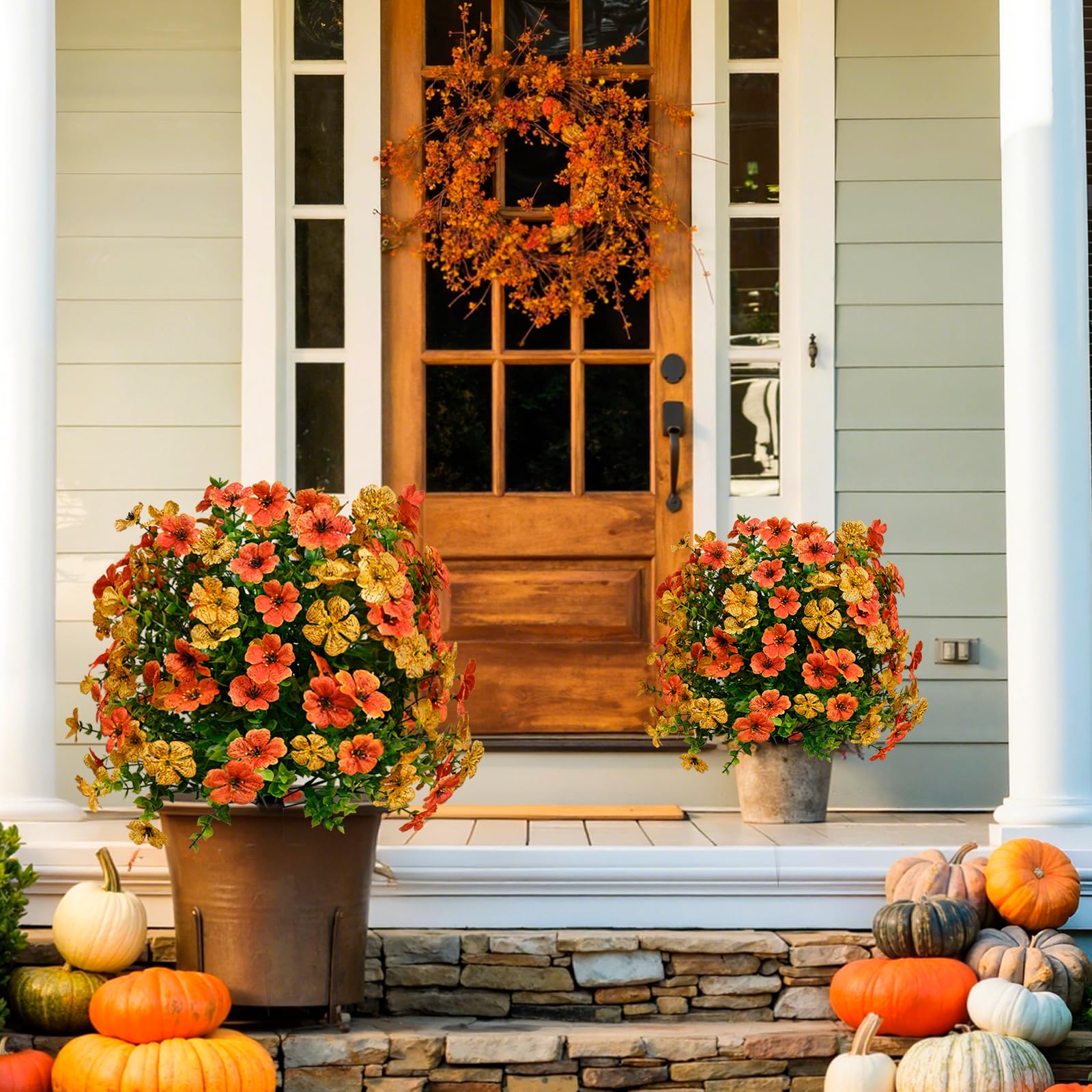 Artificial Topiary Bushes for Outdoors with 7.8” Spike, Orange Boxwood Ball Fake Shrubs UV Resistant Faux Plants for Indoor Outdoor Fall Thanksgiving Halloween Decor