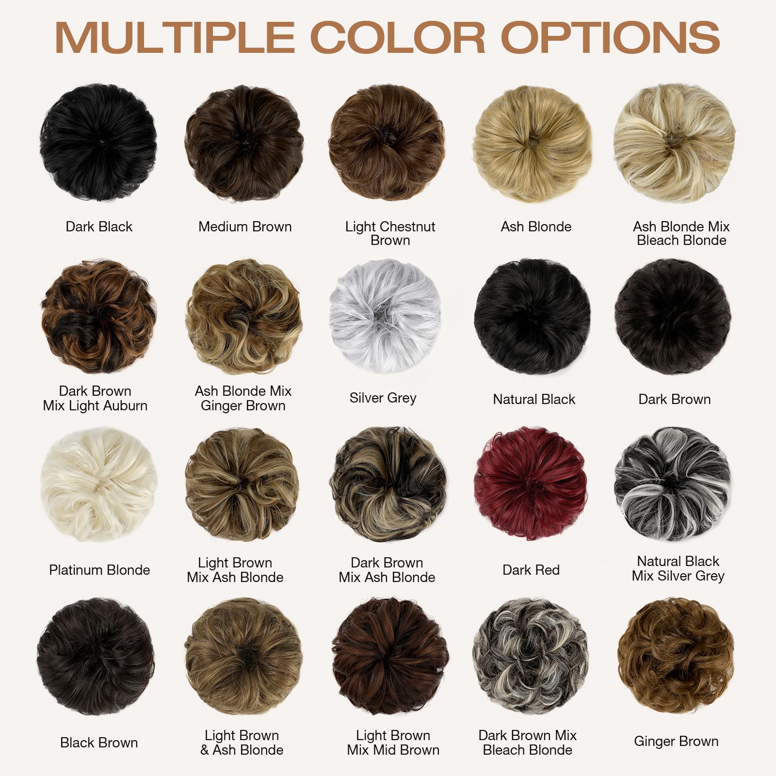 Customer Service: Due to the influence of screen resolution and camera lighting, there may be a slight color difference between the image and the actual hair bun. If you are uncertain about the color of the messy bun, please share an image of your hair with us. We will provide you with a color matching service.