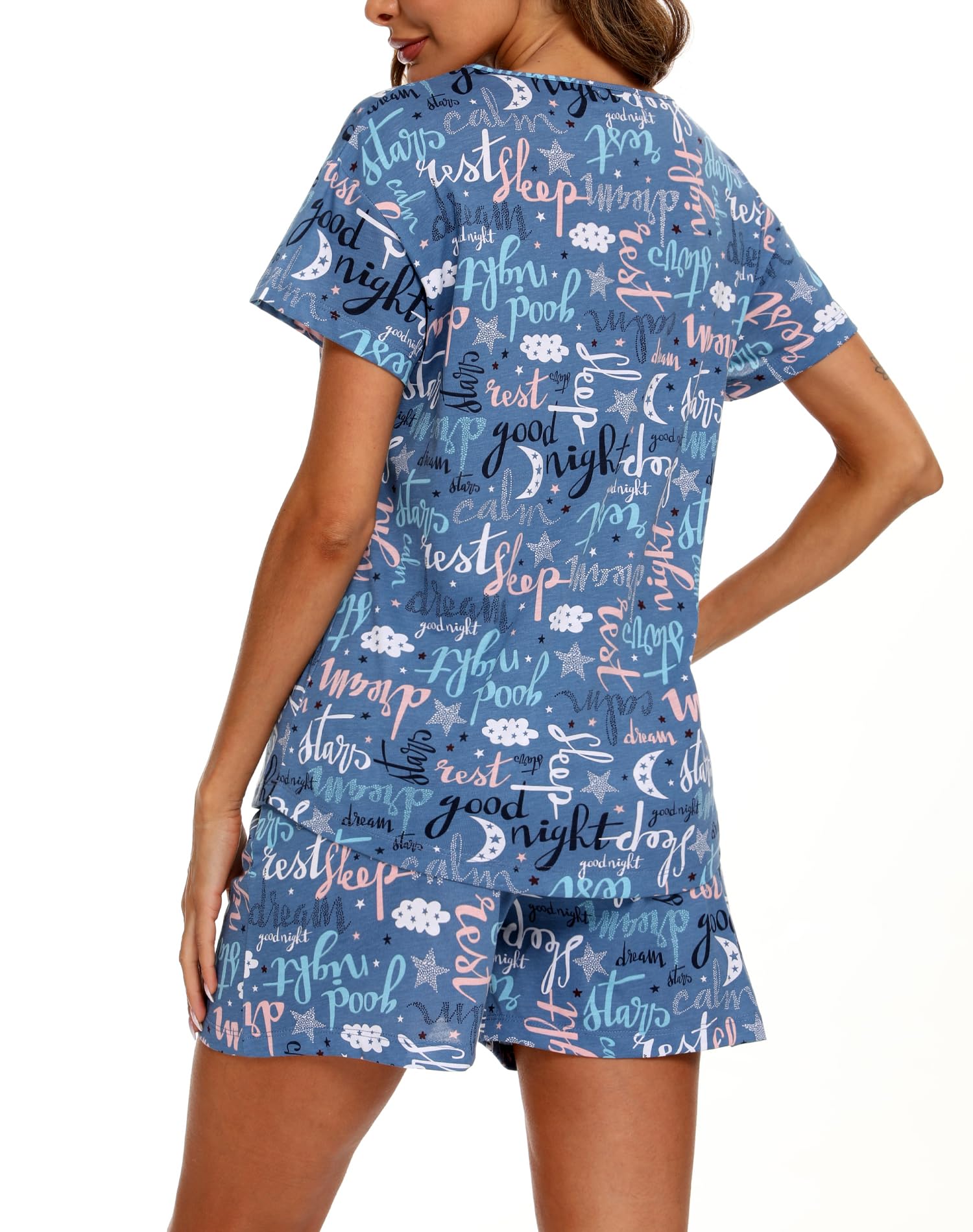 Comfy Material: Made of 60% cotton, 40% polyester, soft, non-irritating, superbly breathable, offers gentle give while maintaining its shape, summer pajama short sets bring you comfy skin touch feeling.