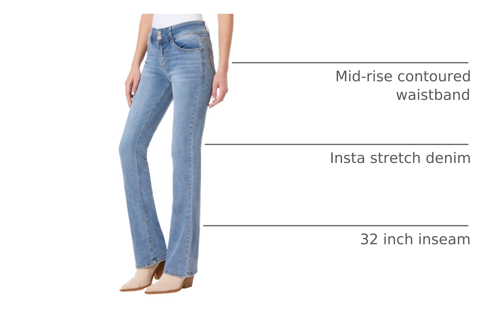 Description WallFlower boot cut jeans for woman mid rise curvy jeans for women in Insta Stretch denim jeans for women bootcut is our stretchiest ever, with outstanding recovery that keeps your jeans for women looking amazing all day. With the premium feel and endless holding power of these boot cut jeans women youโve definitely found your new favorite womans jeans. Maintain your cool and casual style whether you're on horseback or heading back to school. Style our jeans for women bootcut in 90s, jeans for women trendy y2k aesthetic, festival and everyday stretchy boot cut jeans for women looks. The versatility also makes these great travel pants women. Find petite women's bootcut jeans, straight size women jeans, mid size womens mid rise jeans and plus size womens bootcut jeans, in 3 different inseam lengths. Made for Every Body. Period. WallFlower makes women jeans bootcut that feature a contoured waist in mid rise boot cut jeans for woman so you get a flattering, gap-free fit. These are jeans designed with roomier hips and thighs for ultimate comfort. Plus, butt lifting jeans for women for that extra oomph and 5-pocket styling adds a touch of classic boot cut jeans for women style.