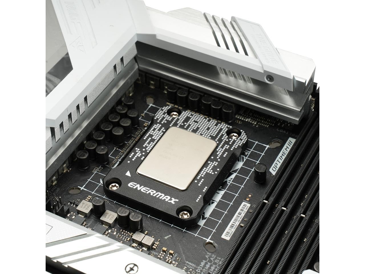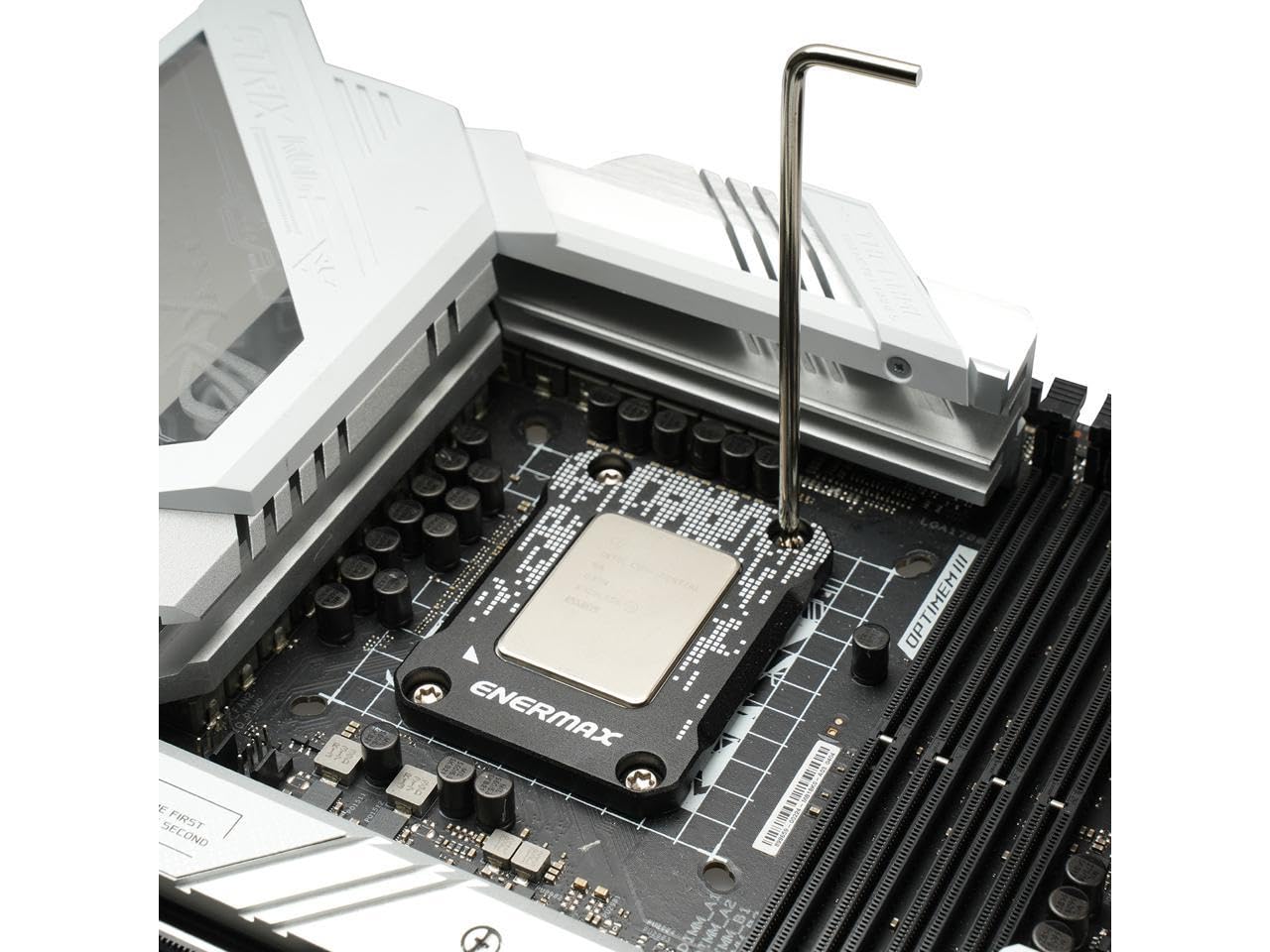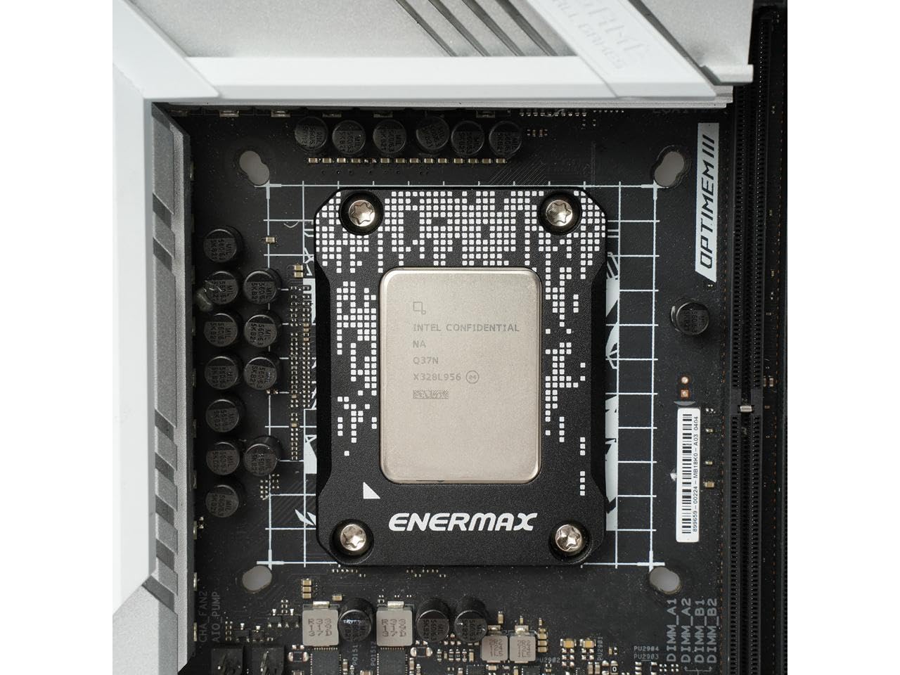 The Enermax ECF1700-B Anti-Bending CPU Corrective Frame is designed to prevent CPU socket bending in Intel LGA 1700 and LGA 1851 sockets, offering crucial support for heavy cooling solutions. Engineered to protect your motherboard from long-term damage, this frame ensures a secure, level mounting of your CPU cooler, improving thermal performance by maintaining optimal contact for better heat dissipation. Built from durable materials, it’s easy to install and provides reliable, long-lasting protection, making it an essential accessory for those using larger, high-performance coolers with Intel's latest 12th/13th/14th Gen Core processors.
