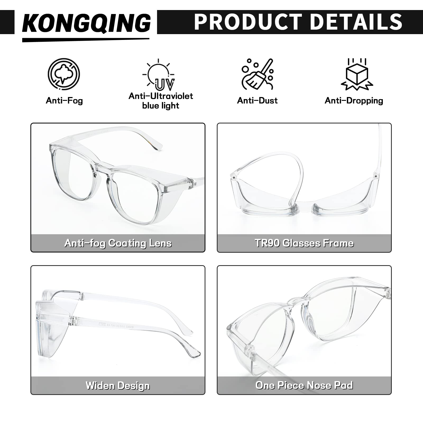 SUITABLE FOR MANY OCCASIONS : Anti Fog Safety Glasses.It is Suitable for Nurse,Nursing Aides, Surgeon,Woodworkers, Metal and Construction Producers, Laboratory Technicians and Dentists, Shooters, or in any Industry you need to Wear Glasses for Safety