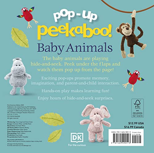 Come join a hide-and-seek adventure in the rainforest! Search the branches and leaves to find where all the baby animals are hiding. There's a little elephant splashing in the lake and a sleepy sloth in the vines, just lift the flaps for a pop-up surprise! Read the lively rhymes and make story time fun! Follow the beautifully illustrated animal escapades through the rainforest with parents and their babies. This lift-the-flap board book is packed with adorable photos of stuffed toys that you'll just want to cuddle. Find the silly monkey and the lively tree frog. Babies and toddlers will be enchanted by finding the surprises behind each flap. This interactive book helps teach young children object permanence, which is an important step in childhood development. Turning the pages and moving the pop-ups help toddlers learn motor control for improved dexterity. This book has been designed as an all-round activity learning experience, to get the most out of story time. Read aloud the lively rhymes that create the amusing story for your kids to follow, and play a guessing game of who is behind the flap! The rhymes and the easy-to-read text help preschoolers remember the new words they are learning for early language development. Peekaboo! Bold, brightly colored pictures, lift-the-flap pages and entertaining rhymes. This book provides lots of opportunities for parent-and-child interaction and hours of animal entertainment. It's a fantastic gift for birthdays. Inside the pages of this pop-up adventure book, you'll find: Hands-on play that builds confident book skills Look-and-find peekaboo games that reward curiosity Rhythmic, read-aloud text that aids language development Surprise! The peekaboo fun doesn't stop here! Your little one will enjoy hours of hide-and-seek surprises with The My Pop-Up Series. Find your farmyard friends with Pop-Up Peekaboo! Farm, search the oceans in Pop-Up Peekaboo! Under the Sea and travel back in time to find dinosaurs in Pop-up Peekaboo! Baby Dinosaur and more! DK Book's Pop-up Peekaboo! series has been shortlisted for the Best Preschool Reading Range in The Progressive Preschool Awards 2018.