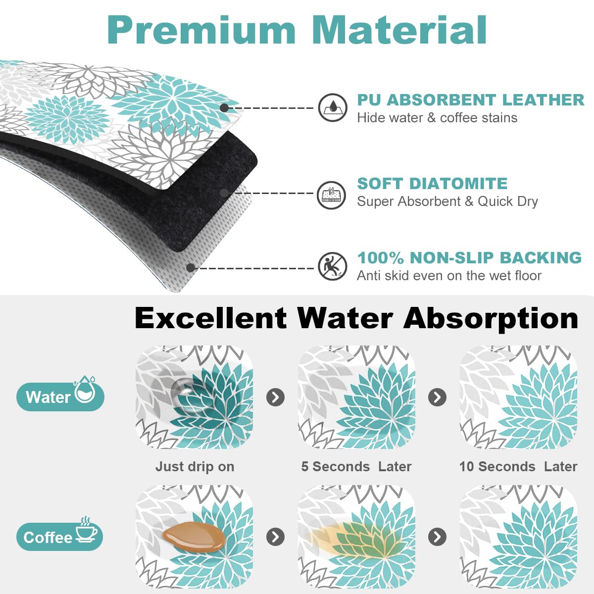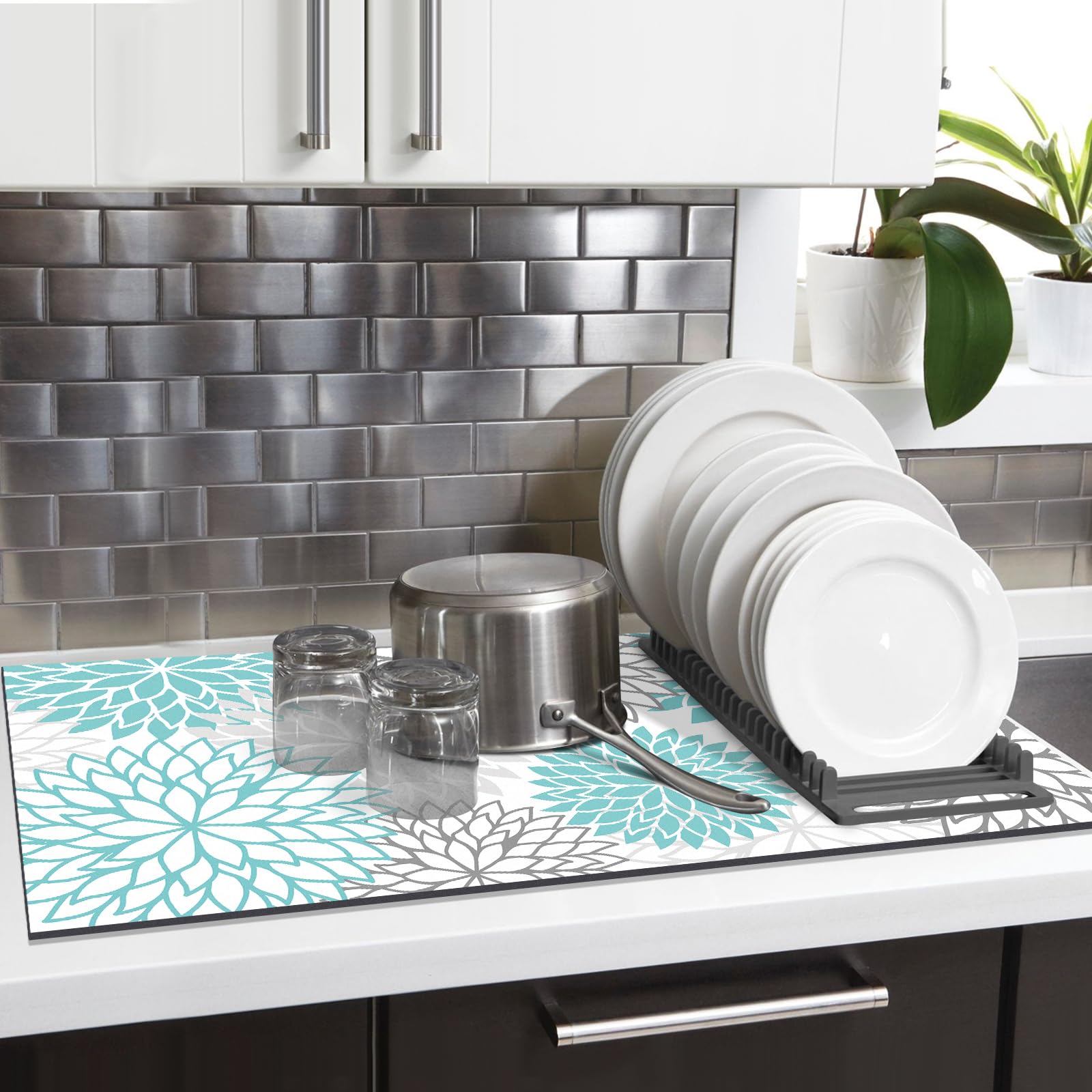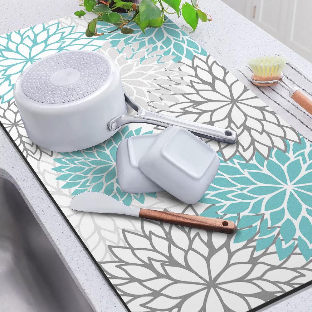 【Innovative Design】The dish drying mats by Findosom feature a stylish, luxuriant flowers pattern design and are available in a variety of colors. Not only is it a drying matt kitchen counter, but you can also use it as a decorative piece that complements any kitchen decor or enhances the beauty of your coffee bar table or desk