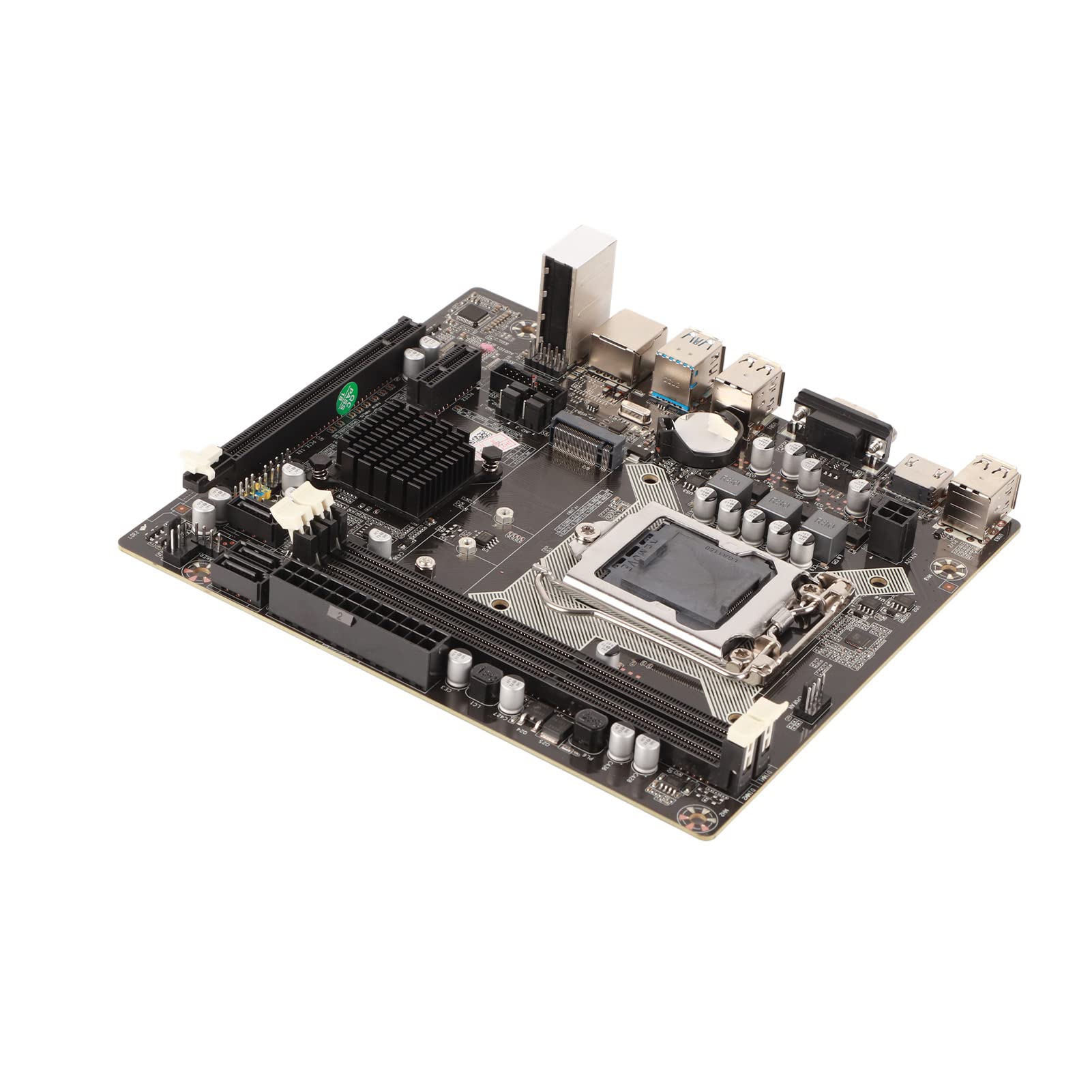Specification: Features: 1. This motherboard is with 3 SATA2.0 interfaces, and a PCI-E x16 graphics card slot. 2. Compatible with DDR3 desktop memory 1066/1333/1600. 3. This product has good compatibility and expansion space, and it does not account for system memory. 4. Core graphics card high-definition graphics, high-definition and high-performance core graphics card, support VGA + output. 5. With a excellent workmanship, and it uses the materials. Specification: Motherboard Chip: Integrated chip sound card / network card Main Chipset for H81 NIC chip integrated RTL8105E 100M NIC Audio chip integrated 6-channel audio chip Processor Specifications: CPU for Core Four generations CPU socket LGA1150 Support 1 CPU Memory Specification: Memory type DDR3 1600/1333/1066 MHZ Memory slot 2xDDR3 Expansion Slot: 1 x PCI-E x 16 graphics card slot 1 x USB2.0 1 x USB3.0 3 x SATA2.0 interface 1 x M.2 high speed hard drive interface I/O Interface: USB interface USB mouse and keyboard universal interface 1 x RJ45 network interface 1 x HD output 2 x USB2.0 2 x USB3.0 Audio port Other Parameters: A 4-pin power connector, a 24-pin power connector, and 3 phase power mode Package List: 1 x Motherboard 1 x SATA Cable 1 x Baffle Note: The color of the slot bottom plate may be different for each batch, the product is continuously optimized and upgraded, and it does not affect the normal performance of the product. Please note that the new type and old type of this product will be sent randomly, and make sure you will not mind before ordering.