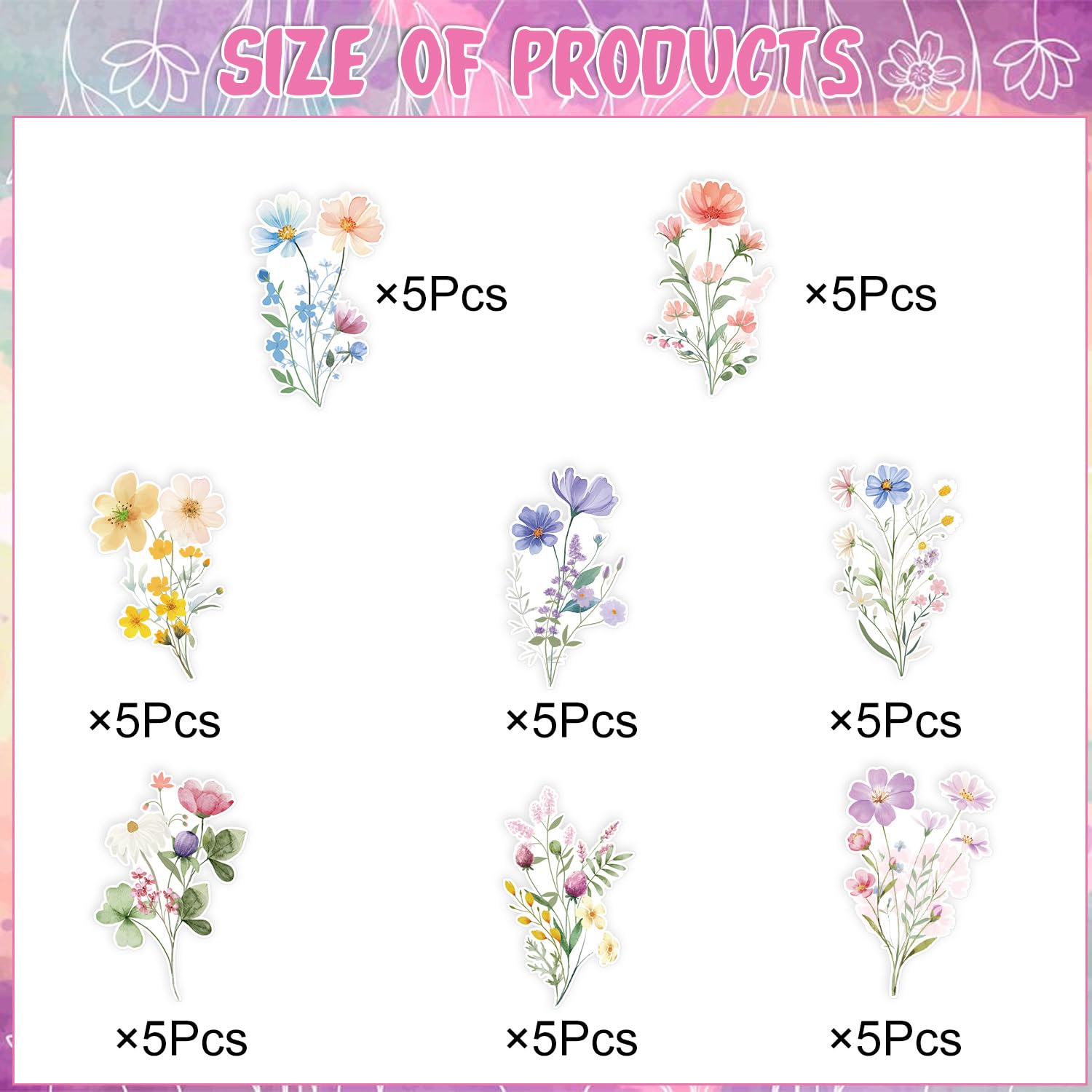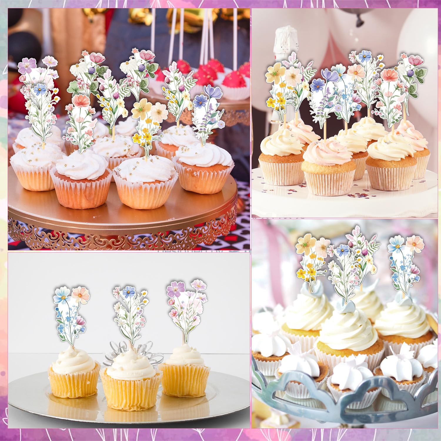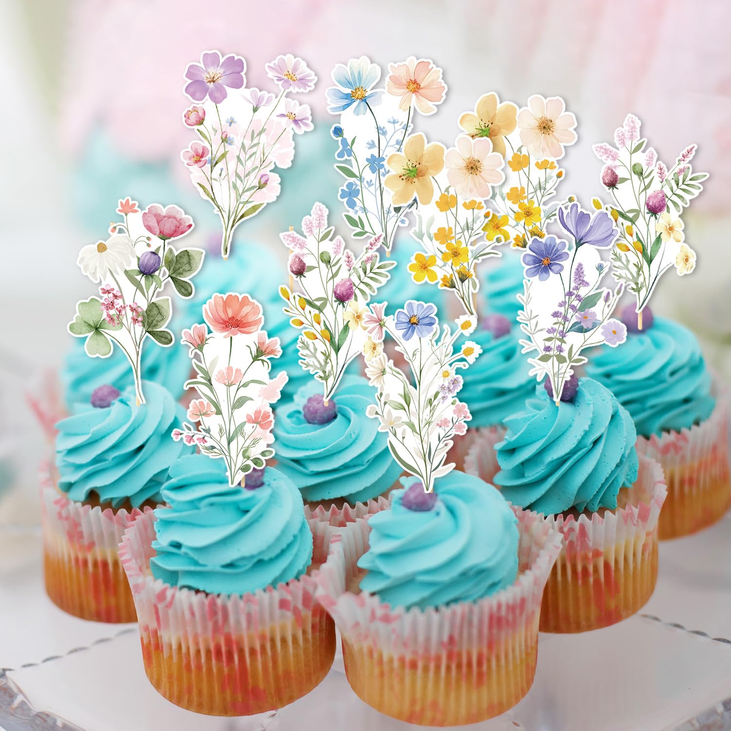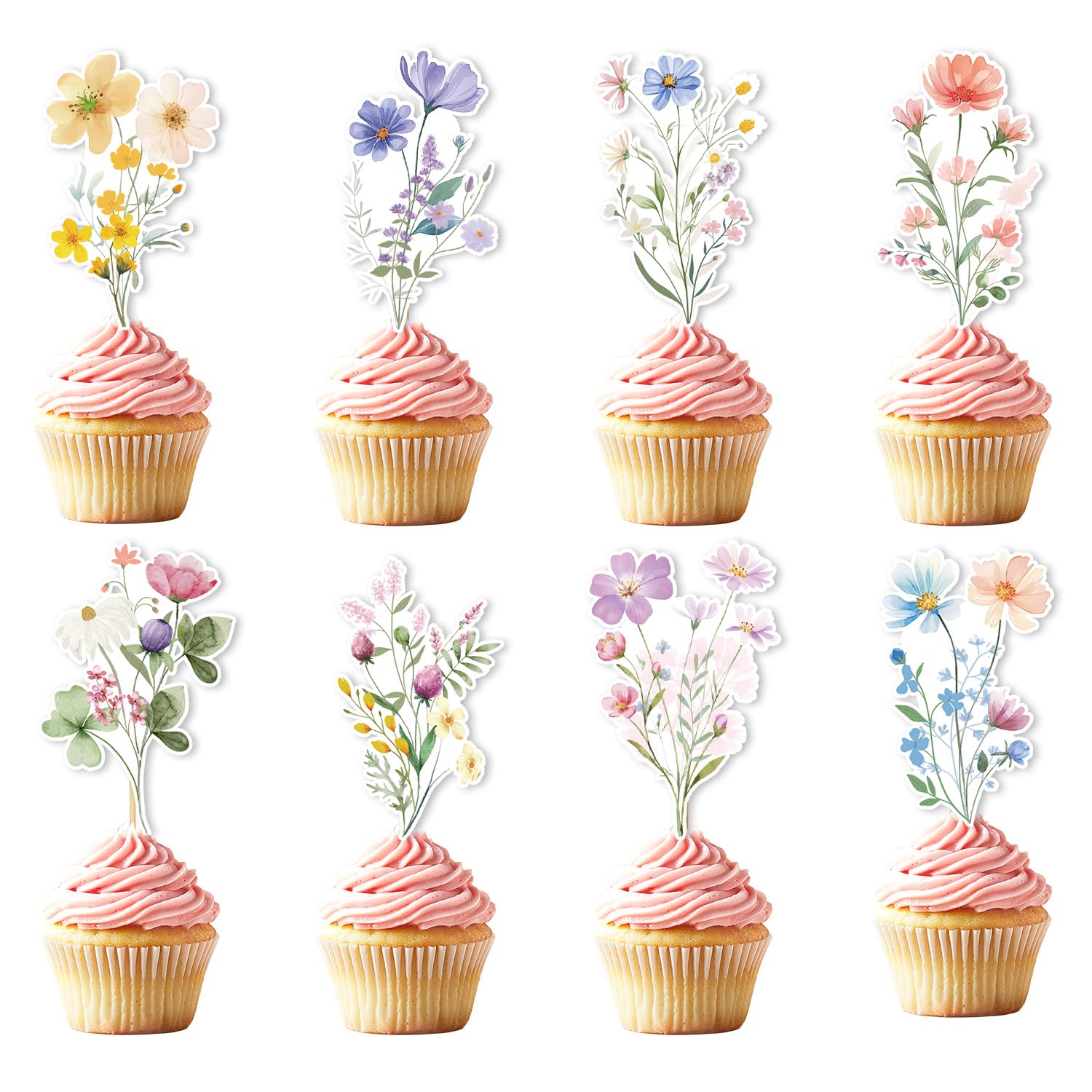 Wildflower Cupcake Toppers: This cupcake toppers offers 40 pieces; featuring eight distinct wildflower designs, they are versatile for various celebratory wildflower parties