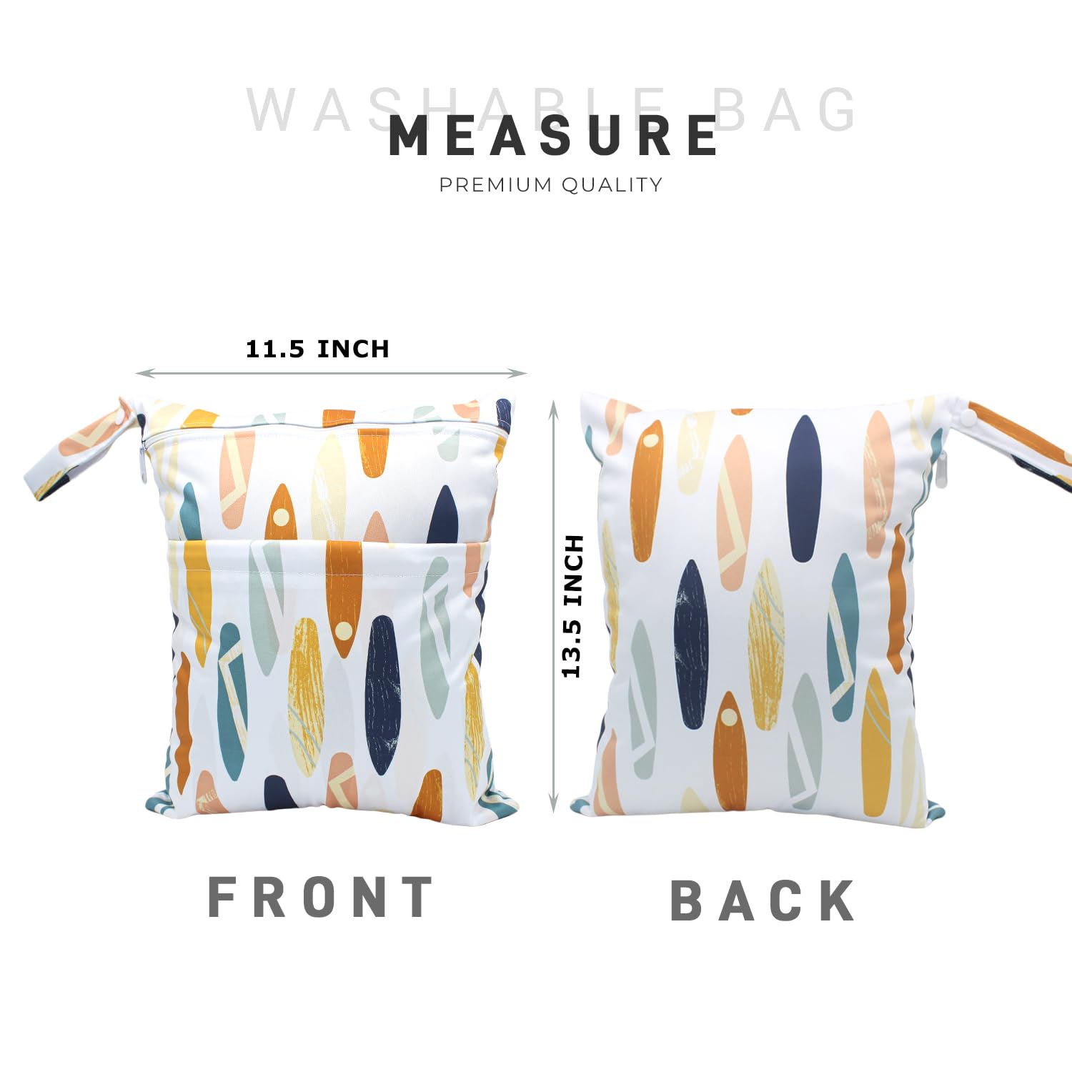 Large Space: You will receive 2 pack wet bags, the sufficient quantities to meet your ordinary use and replacement, size is 30cm x 36cm (approx.:11.5 in x 14 in), enough to put about 5-7 cloth diapers, can be also used to place swimsuit, workout gear etc.