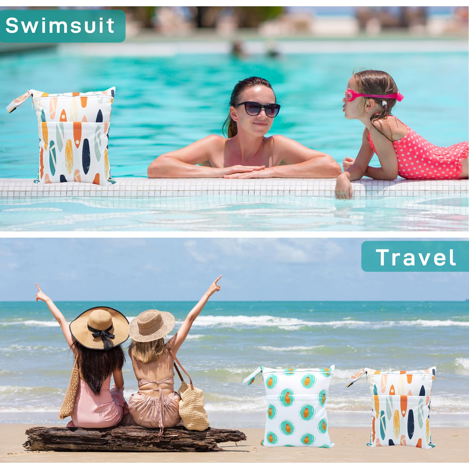 Double Zippered: Two zippered pockets compartments, a truly wonderful wet bag that allows you to carry your wet and dry items separately, they're sewn and sealed to avoid wicking or leaking.