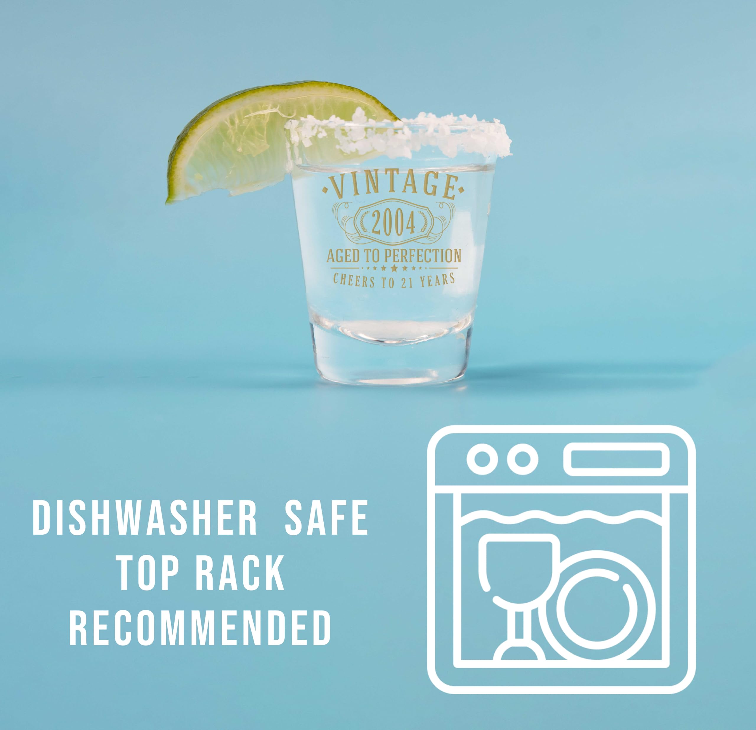 Printed design is high quality and dishwasher safe, making these easy to care for. This shot glass with the vintage design is a gift that will make any birthday more special.