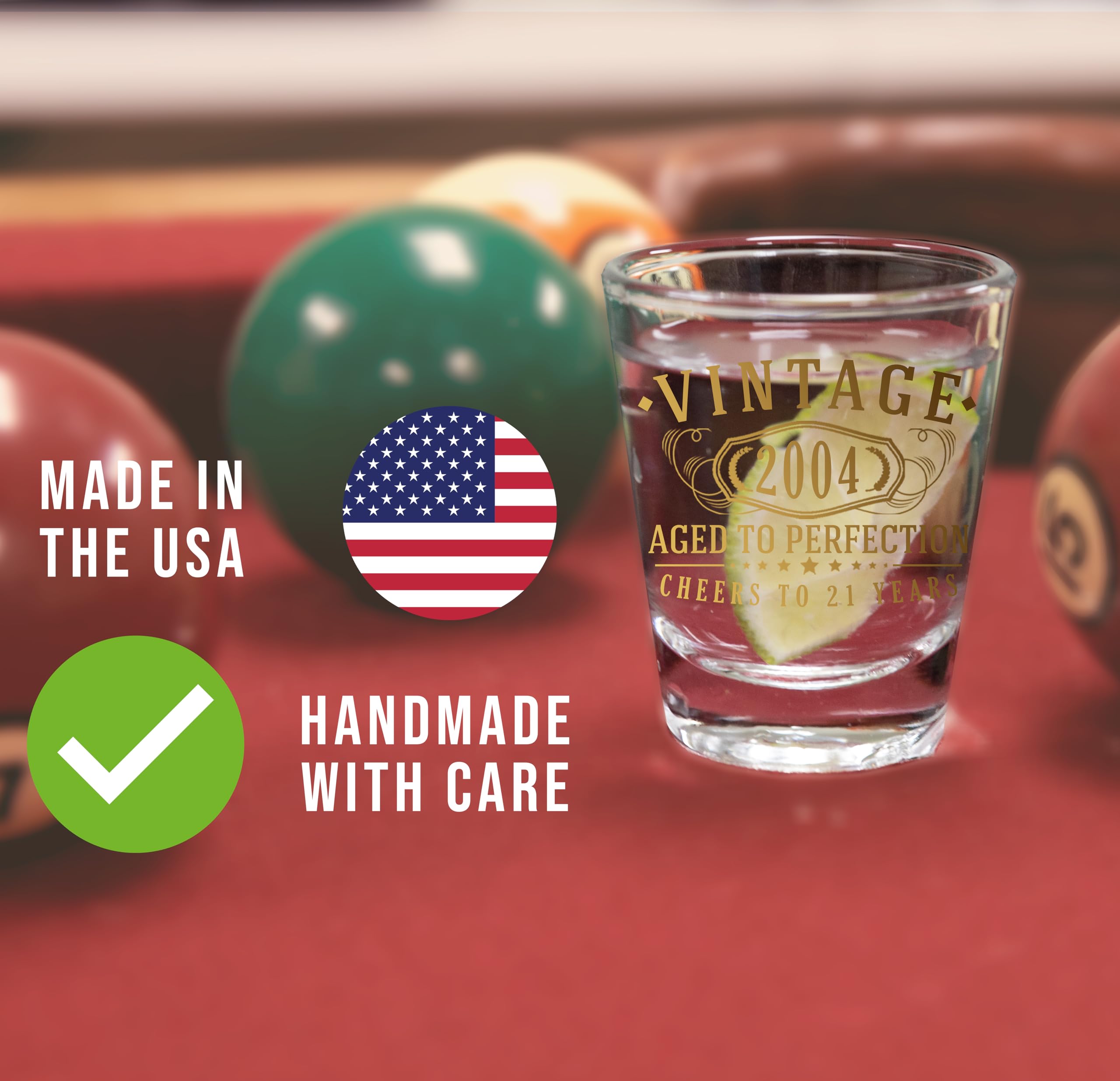 This vintage premium shot glass is made in Fayetteville, Arkansas, by a dedicated local team. We strive to give anyone turning 21 a special way to celebrate. Wish the guy or girl in your life a very happy birthday with this great gift.