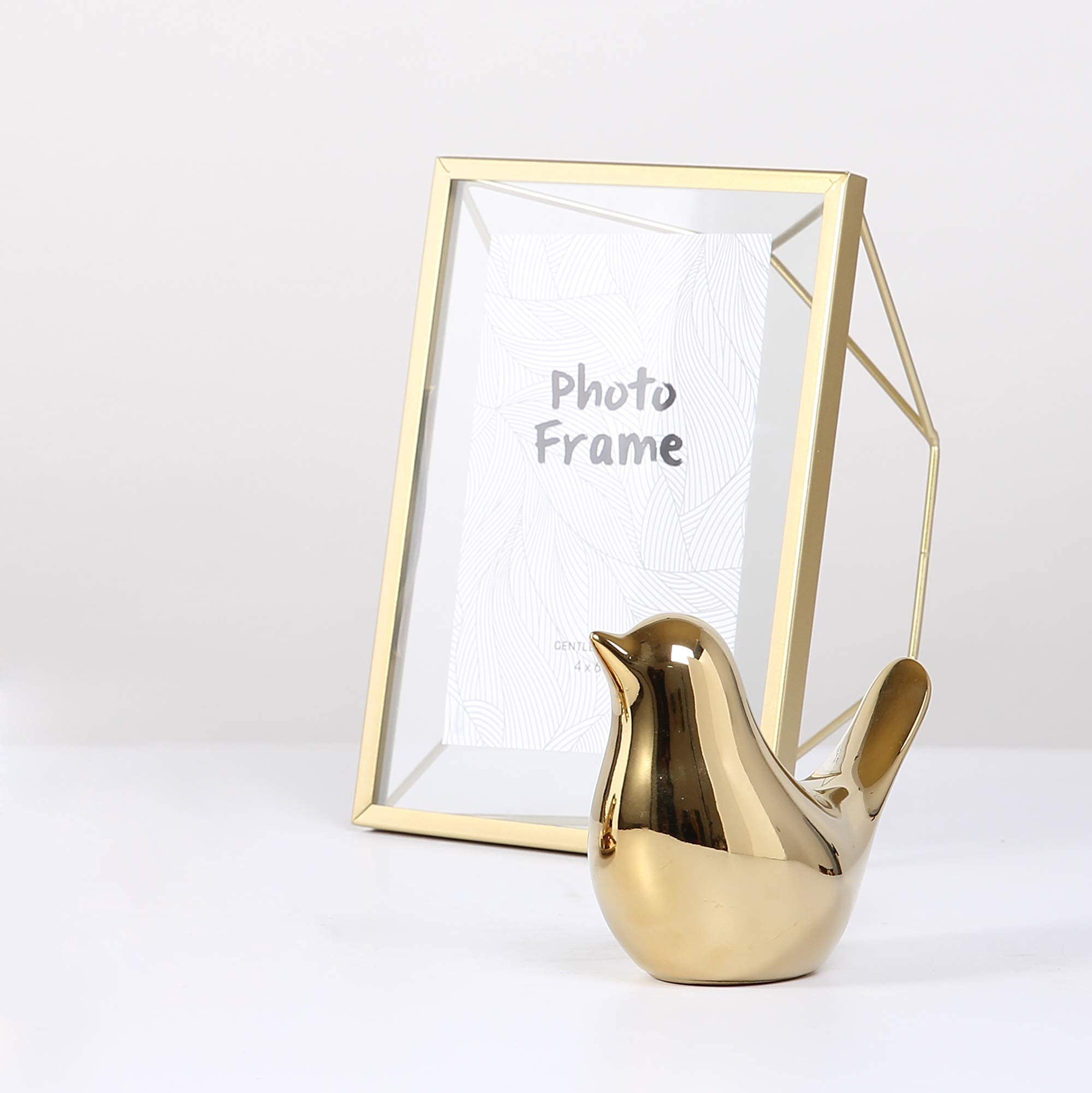 Modern simplicity style golden bird decorative ornaments are made by ceramics and coated with a layer of gold. The surface is pretty shiny and has a sturdy, smooth touch, but easy to get scratched. Please handle fragile products with care. Also, please notice that the color of birds may vary depending on different lights.