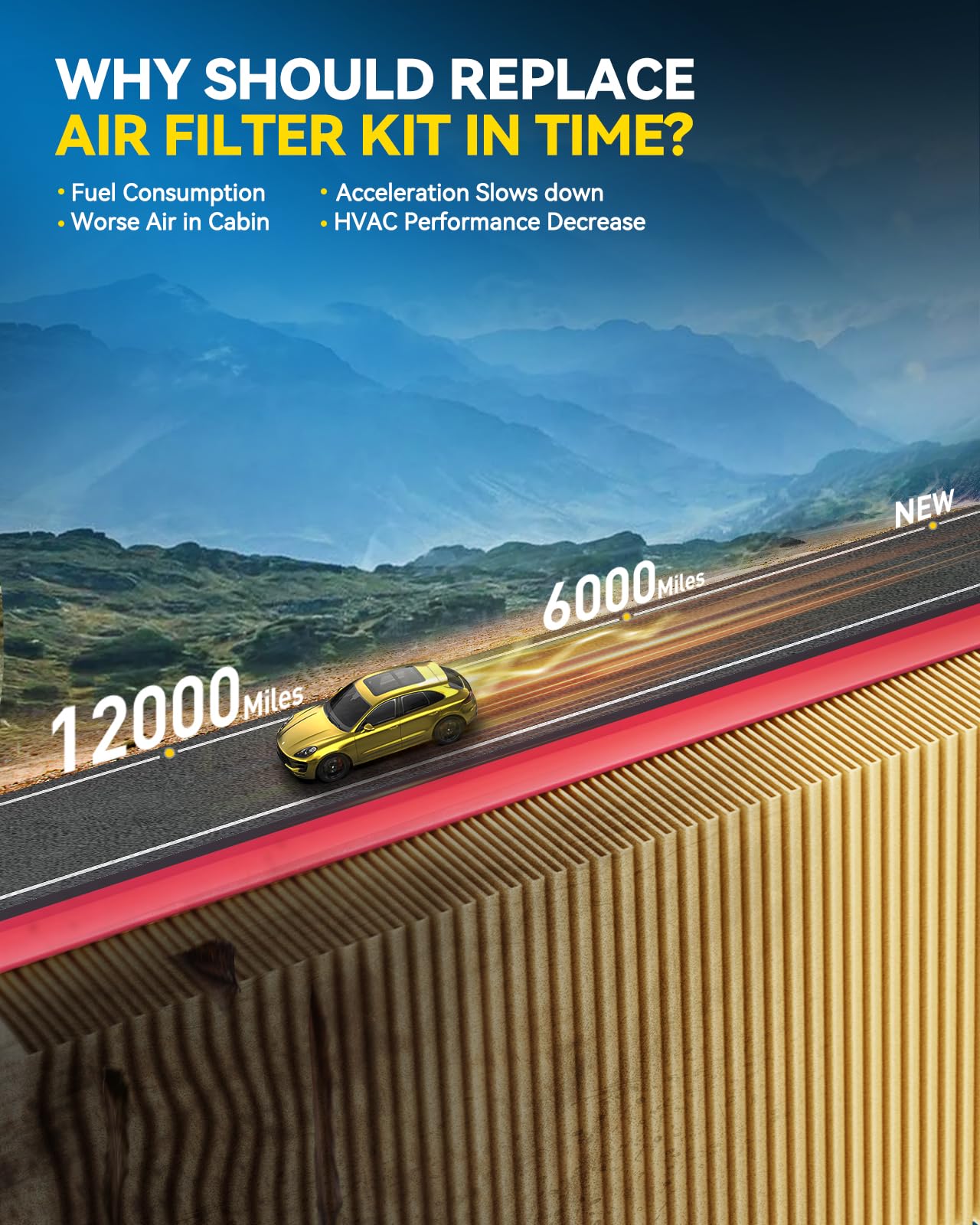 [Smart Maintenance Schedule]: Simplify your car care! We recommend replacing both your cabin and engine air filters together every 12 months or 12,000 miles. One easy-to-remember interval keeps your protection at its peak and your maintenance worry-free
