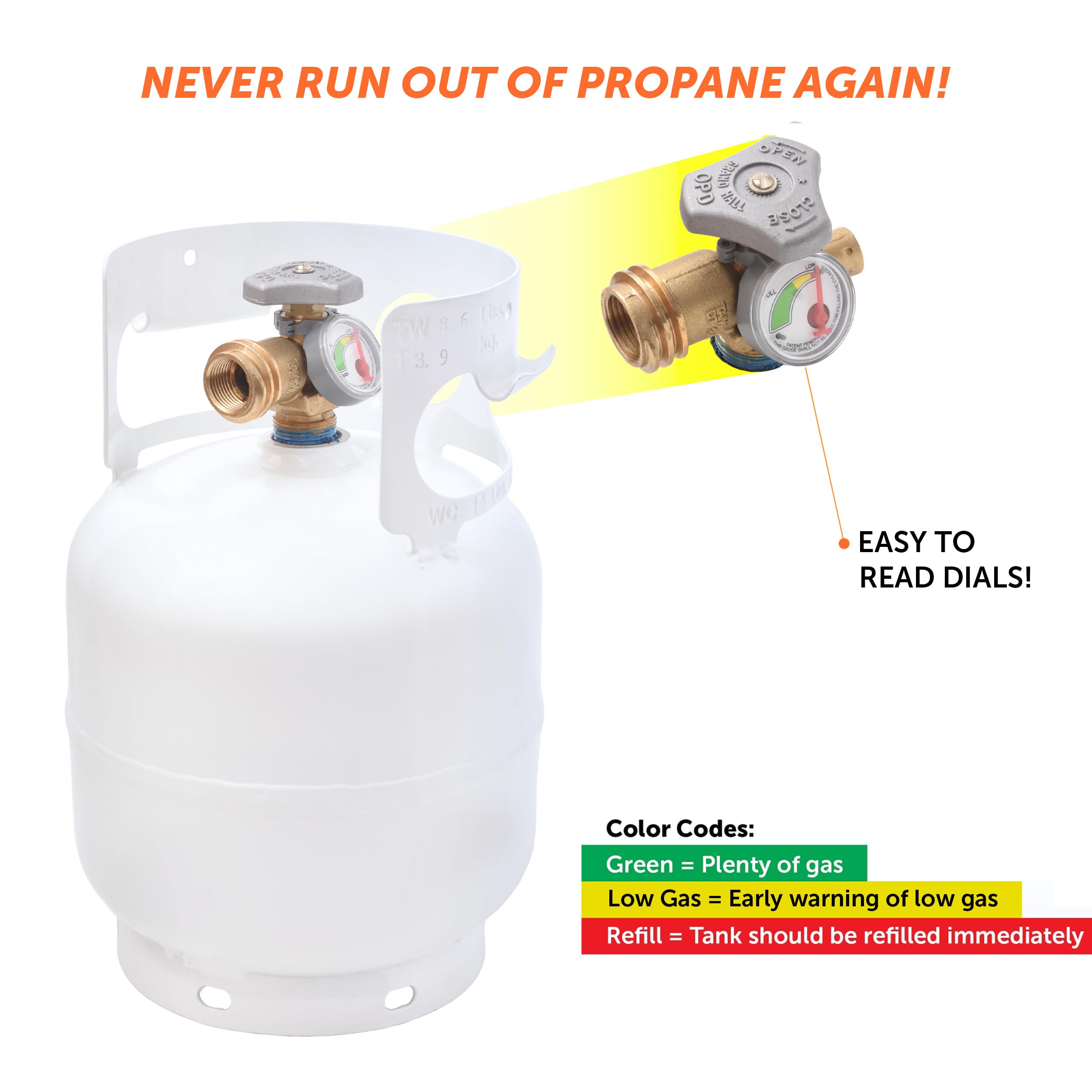 NEVER RUN OUT OF PROPANE: Our built-in gas meter gauge provides accurate gas level readings