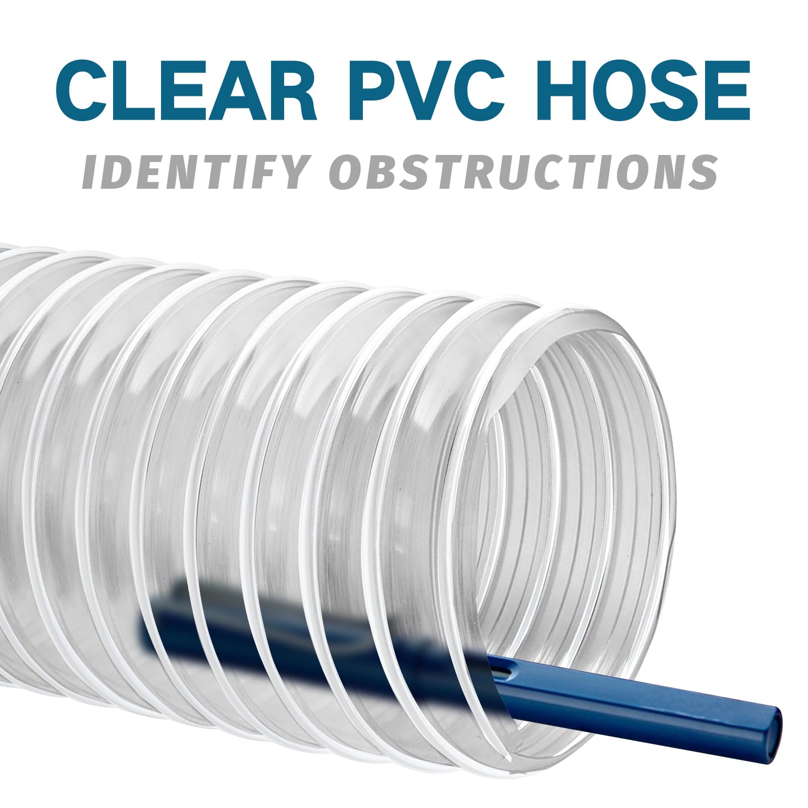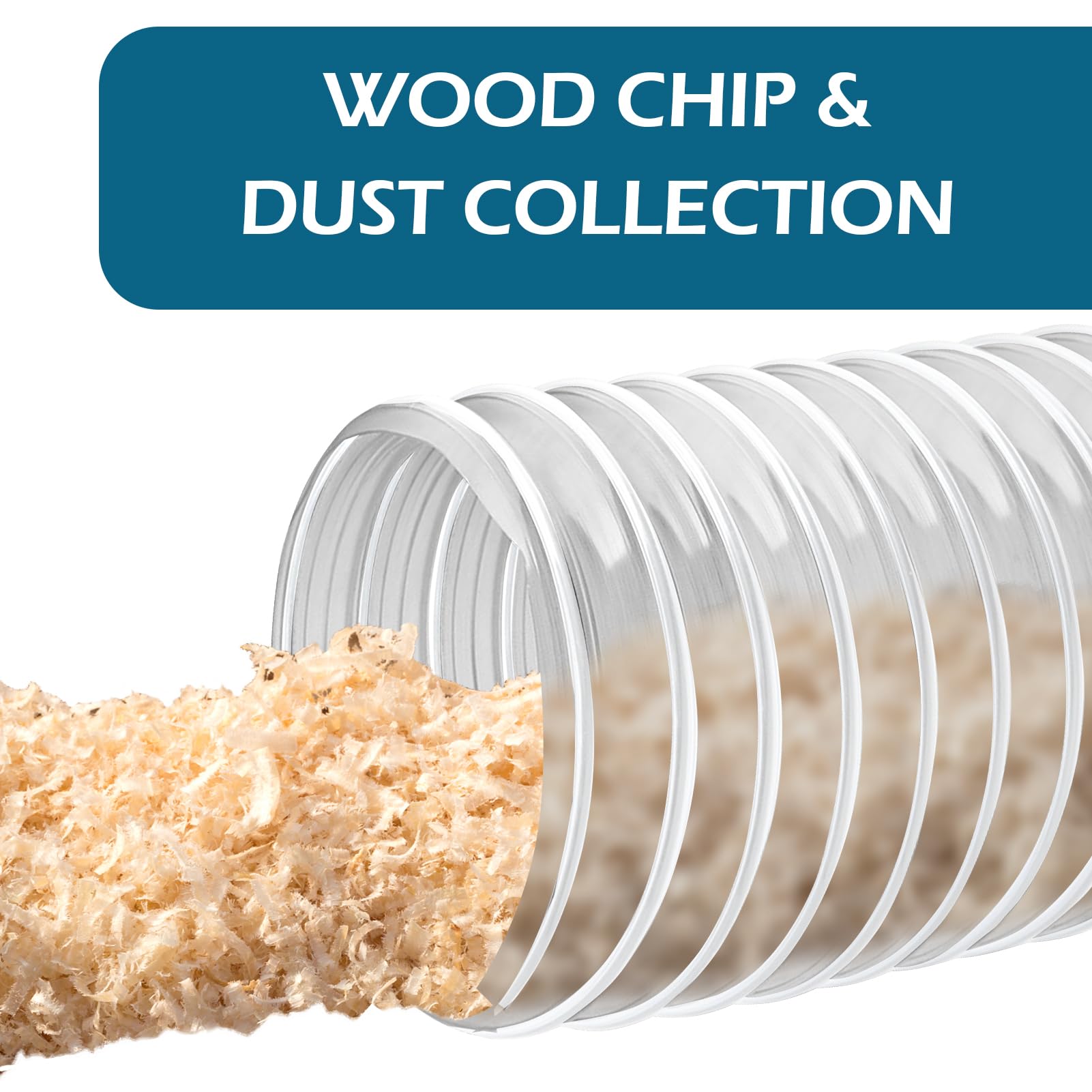 CLEAR PVC DUST COLLECTION HOSE; The clear PVC material allows you to see not only dust and debris, but also if any buildup or clogging has occurred, dealing with unexpected situations in a timely manner.
