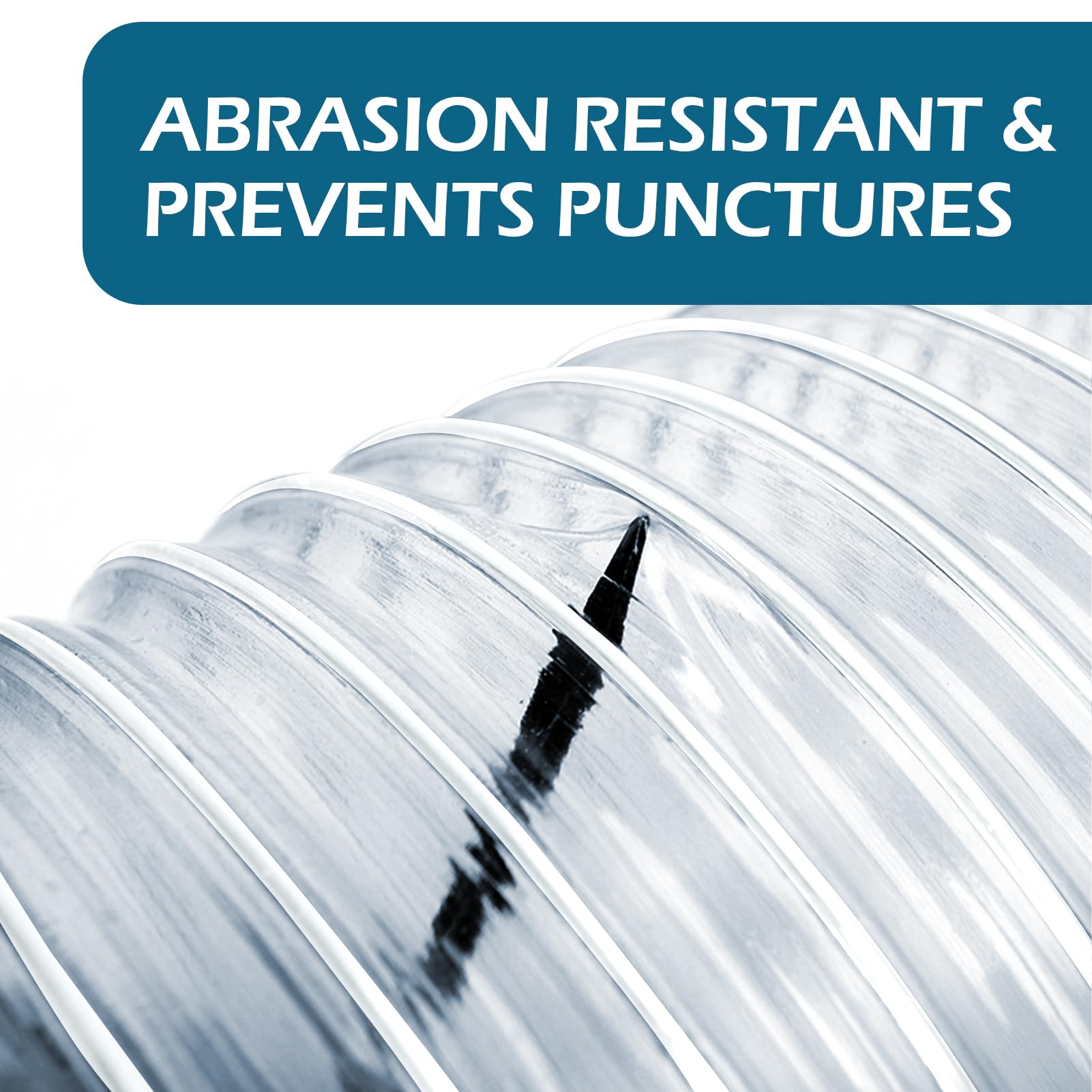 PREMIUM CARBON STEEL WIRE COIL; Premium carbon steel wire coil not only strengthens the hose and makes it less prone to knots, but also enables electrostatic discharge when the PVC dust collection hose is grounded at both ends.