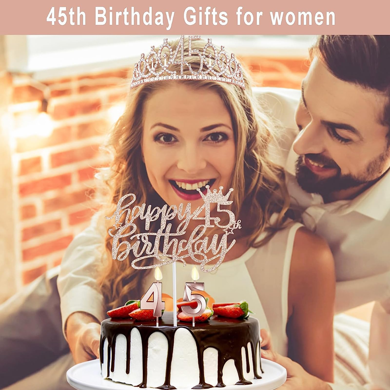 【Multi-Purpose】: Perfect for a girl's 45th birthday party supplies and decorations, make you look very elegant, like a princess. And add more fun to your celebration. Let's have an unforgettable and meaningful moment. By the way, the tiara can also be used as a cake topper.