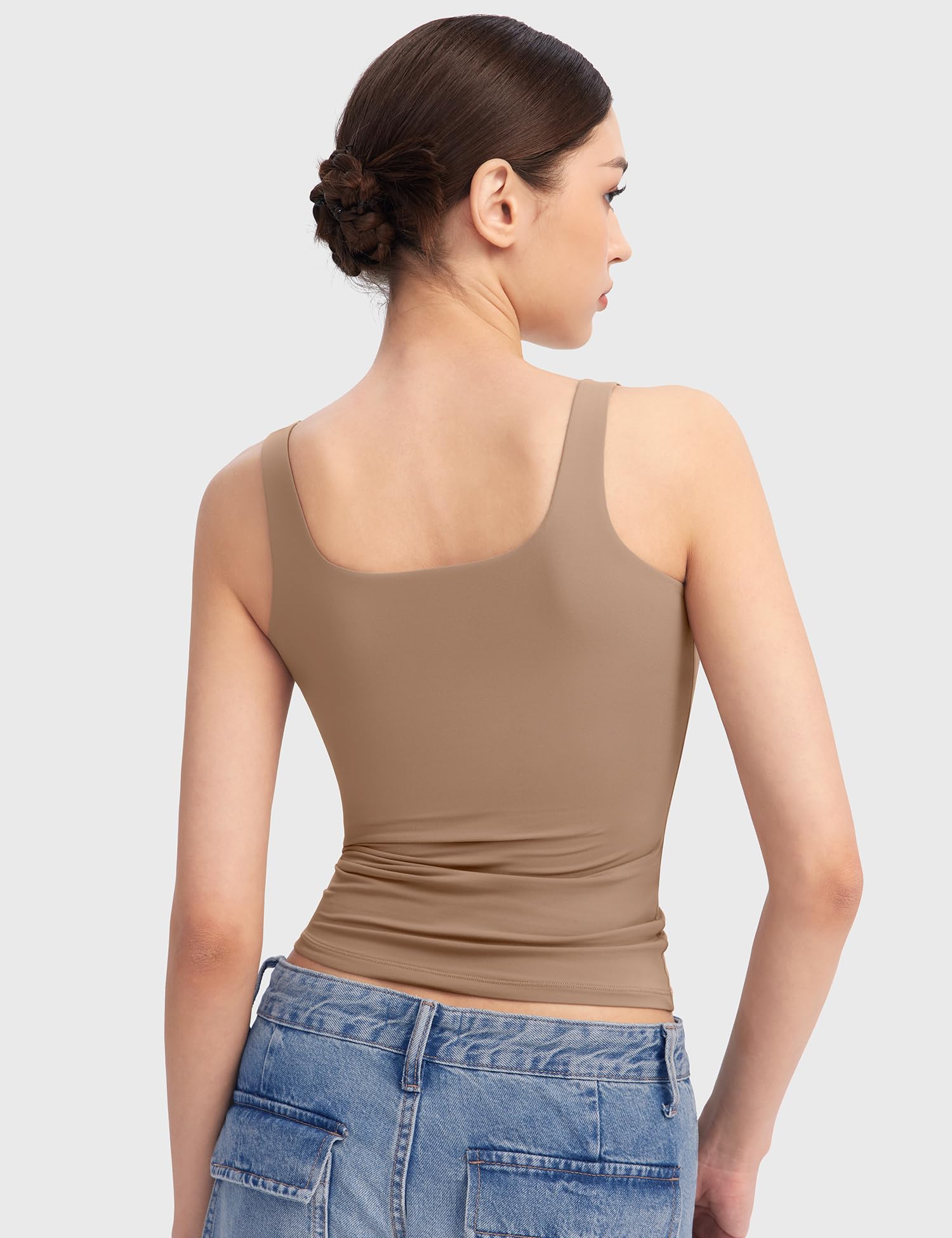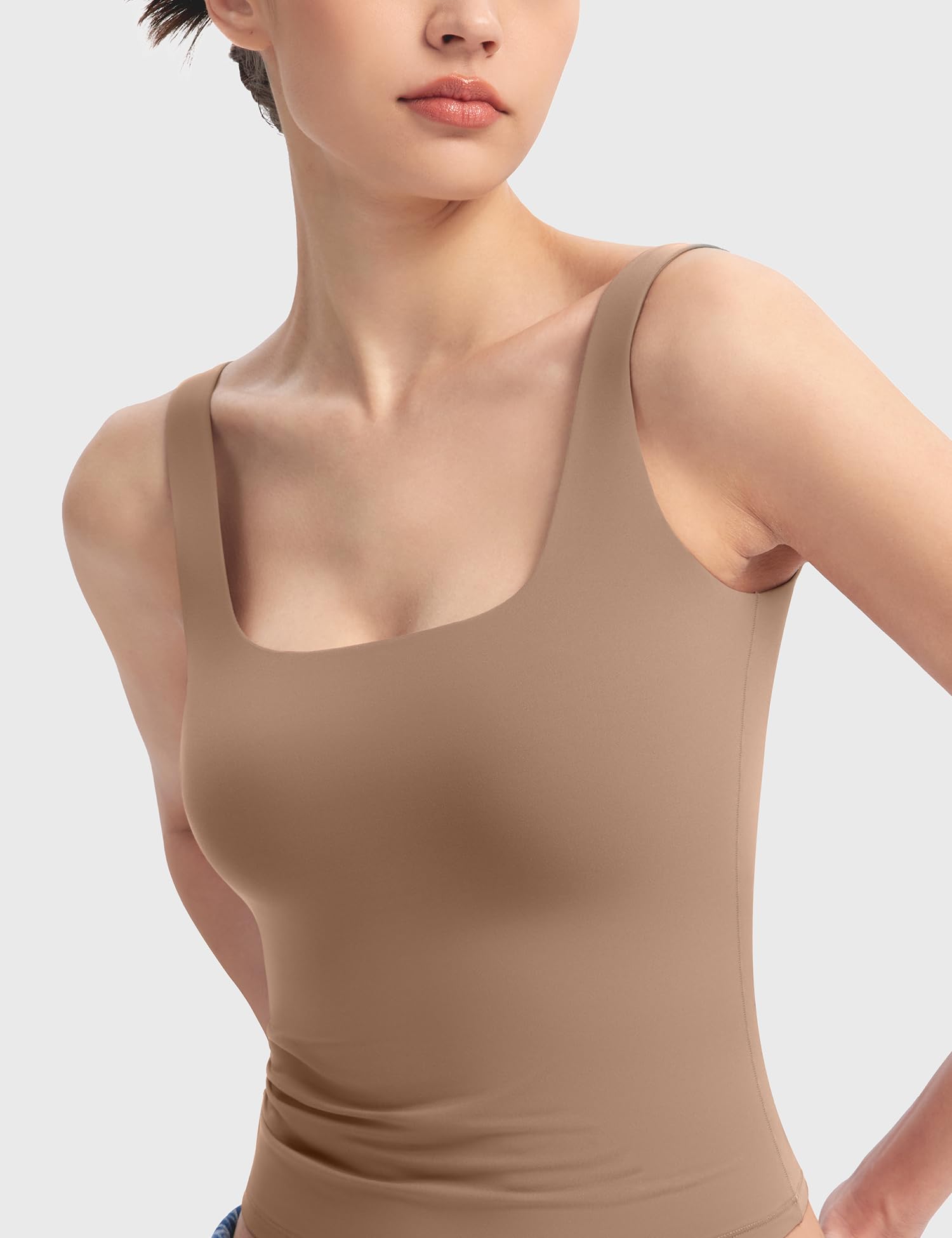 Double Lined Fabric: Our tank top for women boasts a double-layered fabric that guarantees both opacity and optimal breathability in hot summer. With its high elasticity and soft, skin-friendly fabric, you'll revel in unparalleled comfort and unrestricted movement.