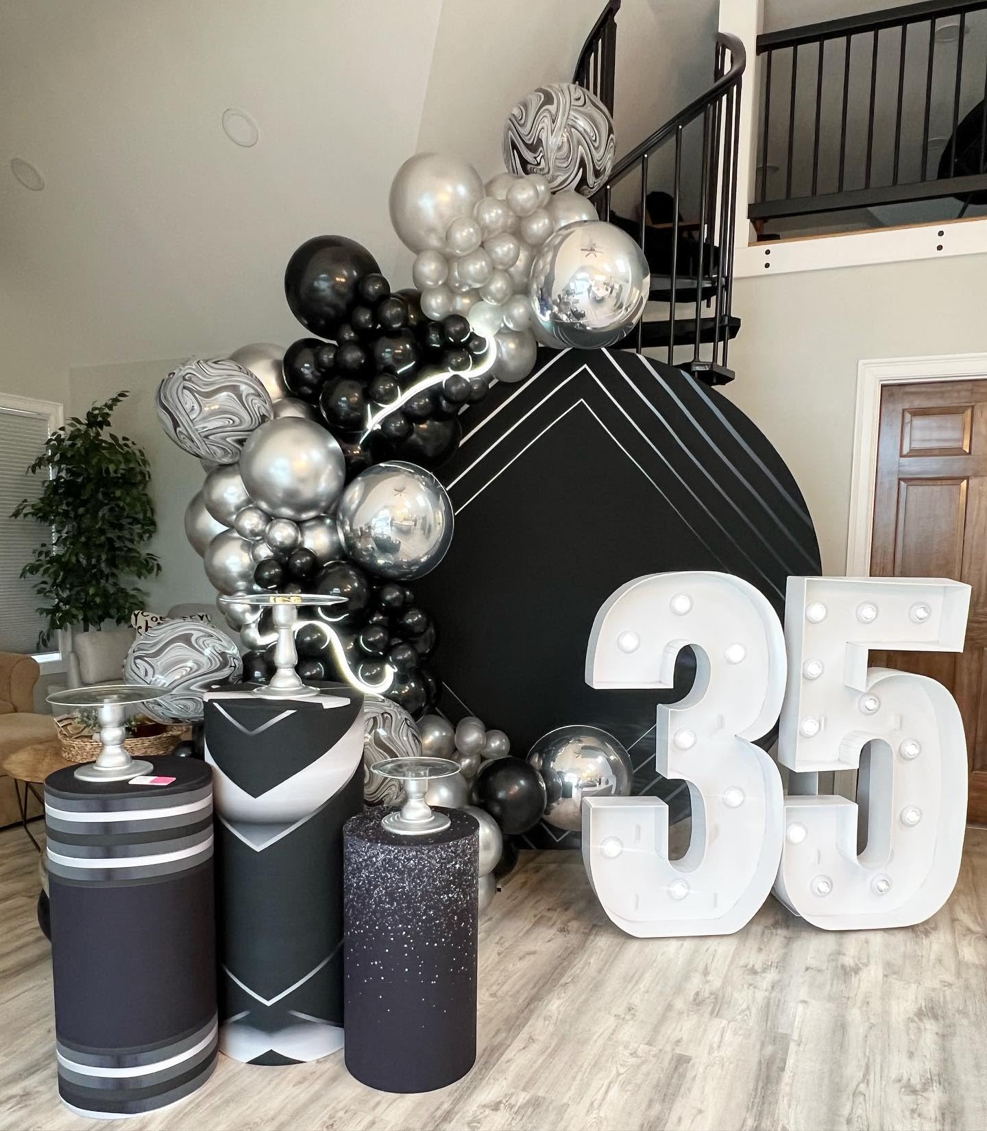 【Perfect Party Supplies】: These black and silver balloons are widely suitable for many occasions. Both indoor and outdoor are perfect background decorations products. black and silver balloons is amazing in birthday, Graduation themed party ect.