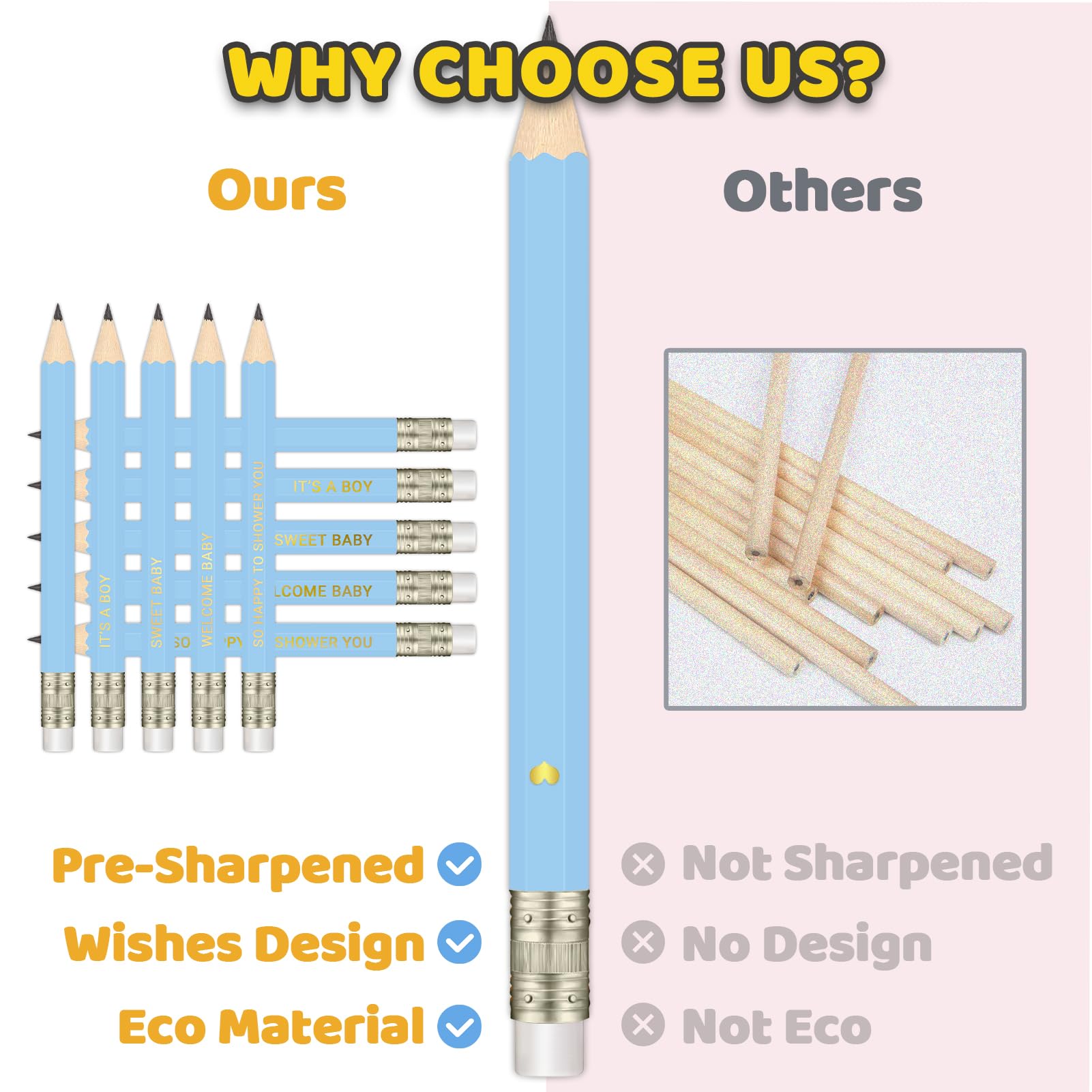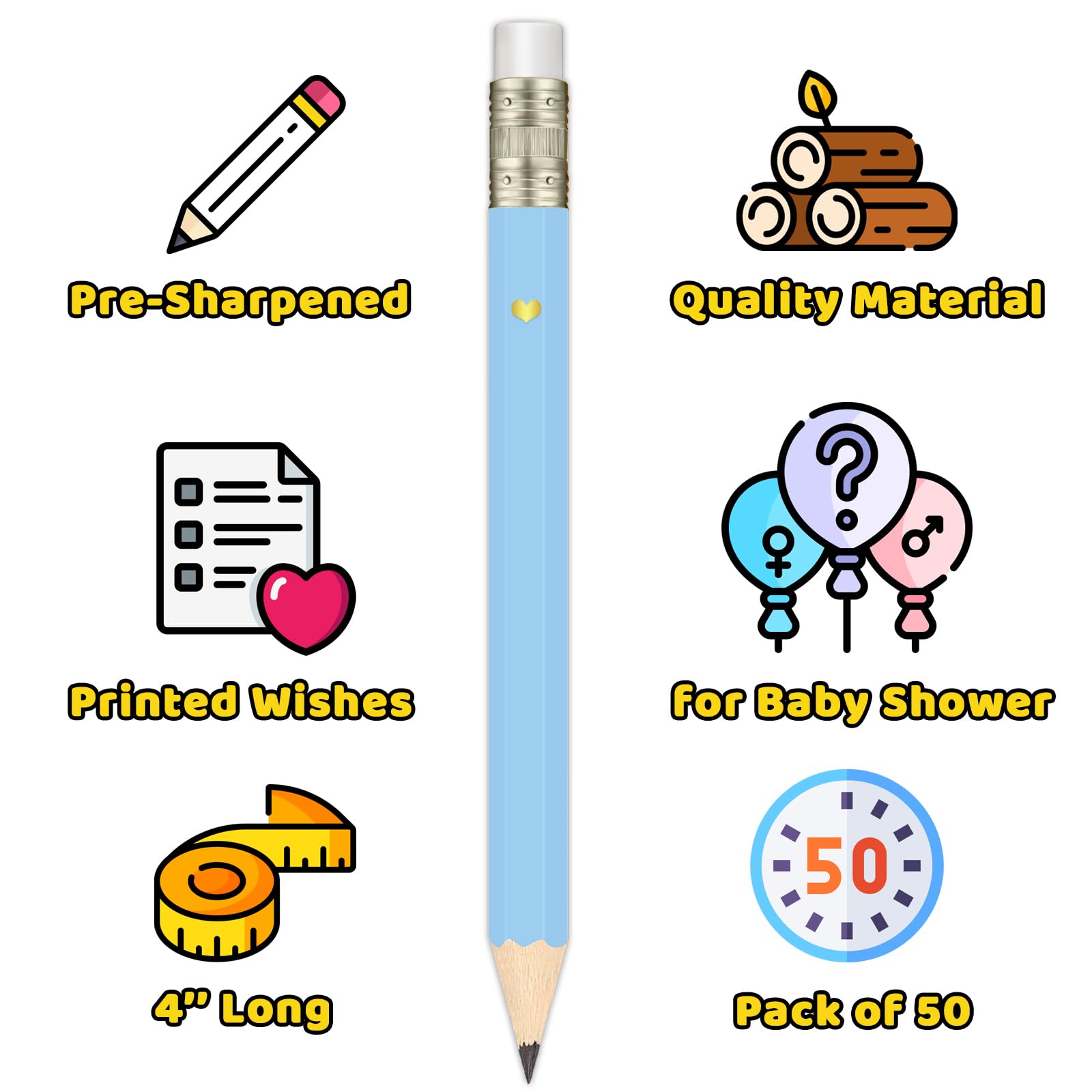 Vusnud 50Pcs – Baby Shower Sharpened Half Pencils with Erasers, Pre-sharpened Pencils for Baby Shower Games, 4 Inches