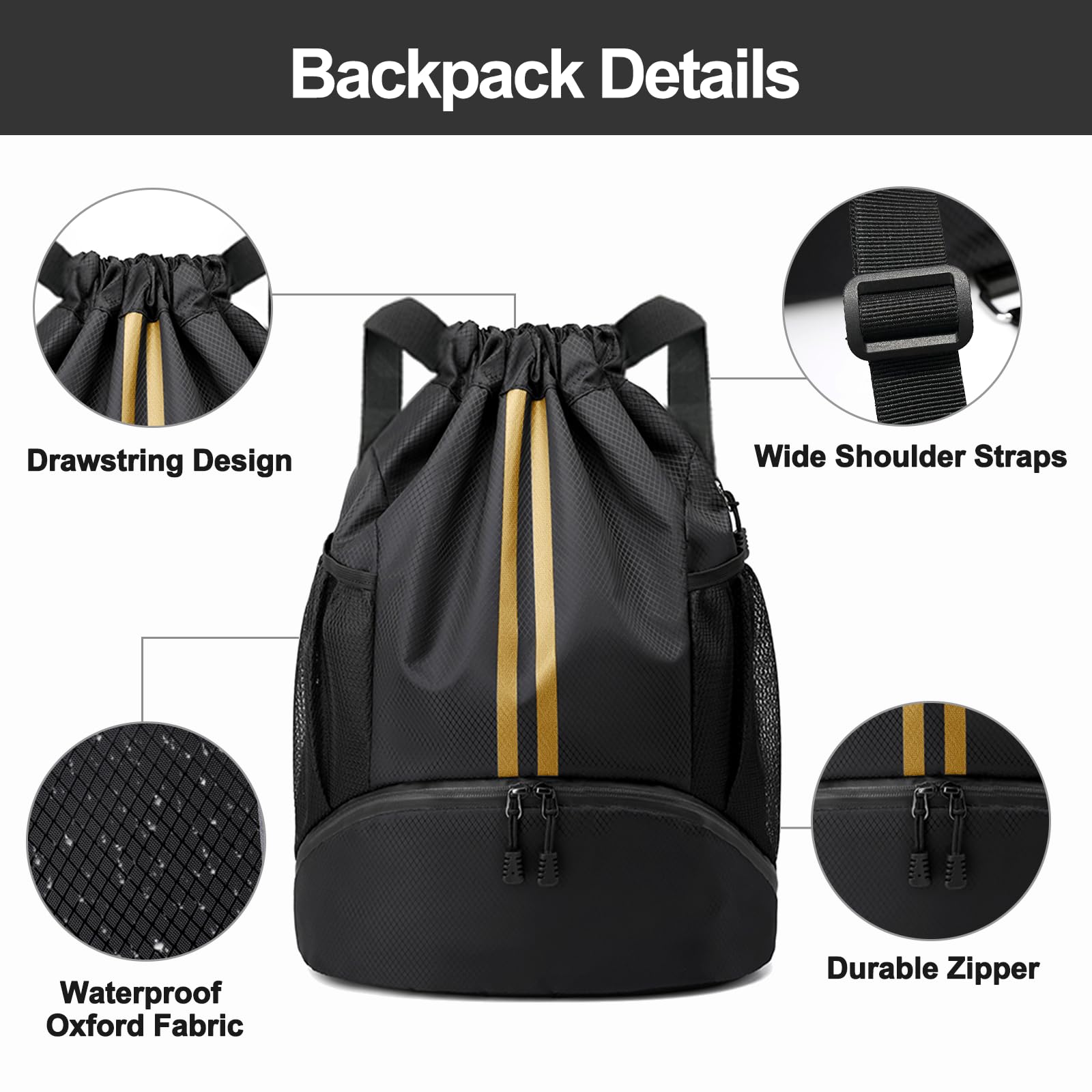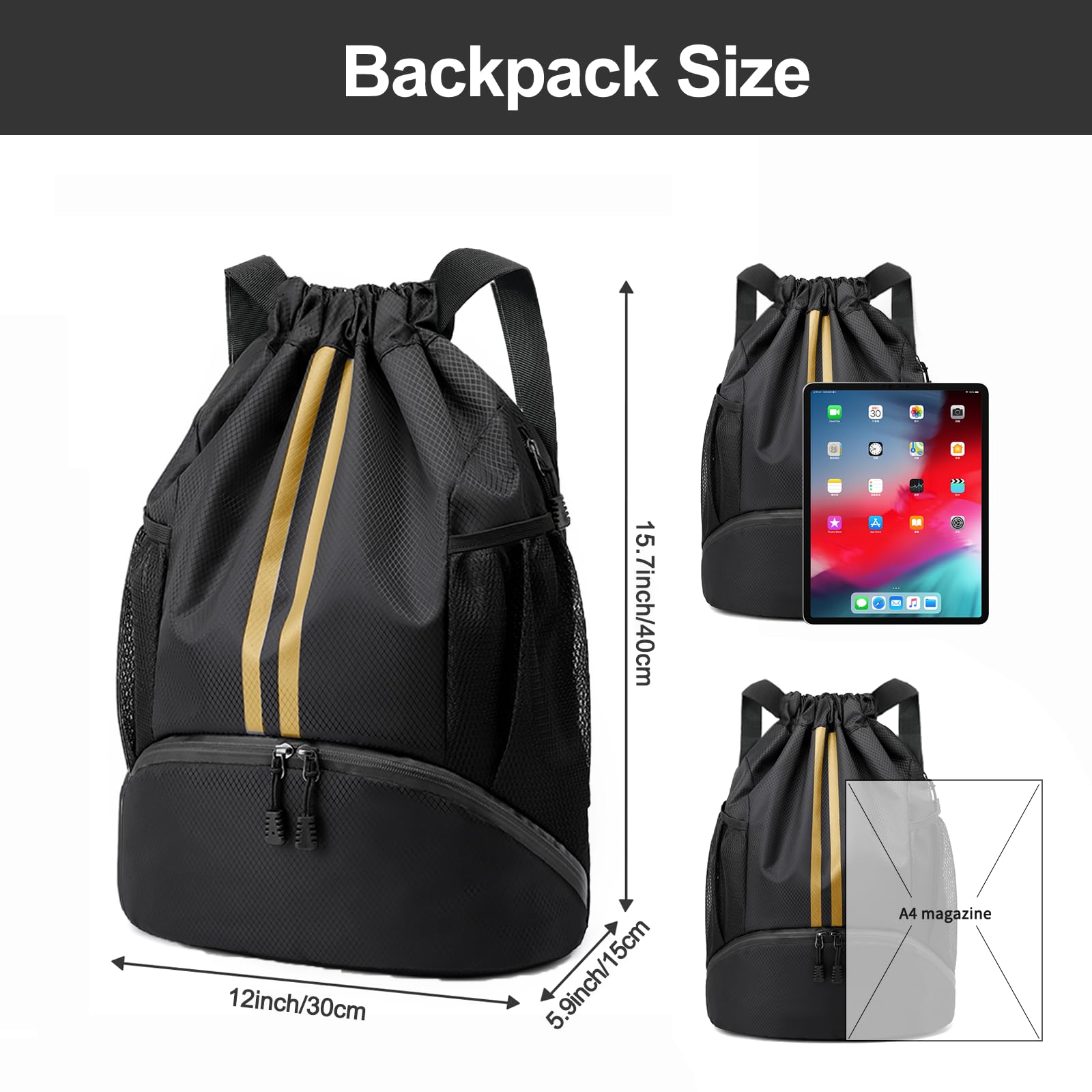 Upgraded Shoulder Straps: With specialized wider sports drawstring, this gym backpack provides ultimate comfort and support. It is very comfortable to carry even when fully loaded