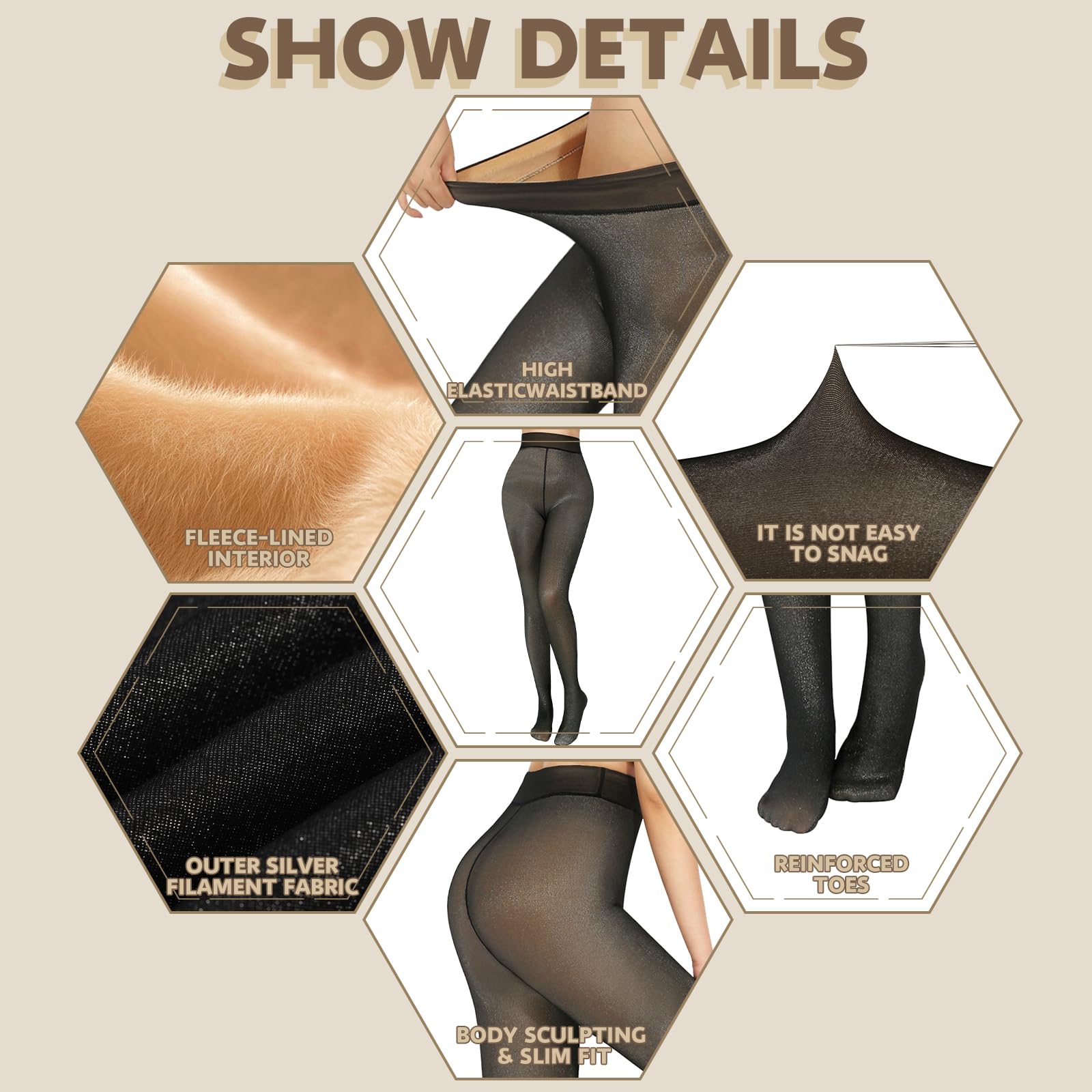 【Slims And Shapes Your Body】:Warm fleece pantyhose comfortable and flexible high waist design flattens your tummy for a trim look and holds your tights in place.Pantyhose leggings enough stretch hugs your legs without the appearance bunching or sagging.
