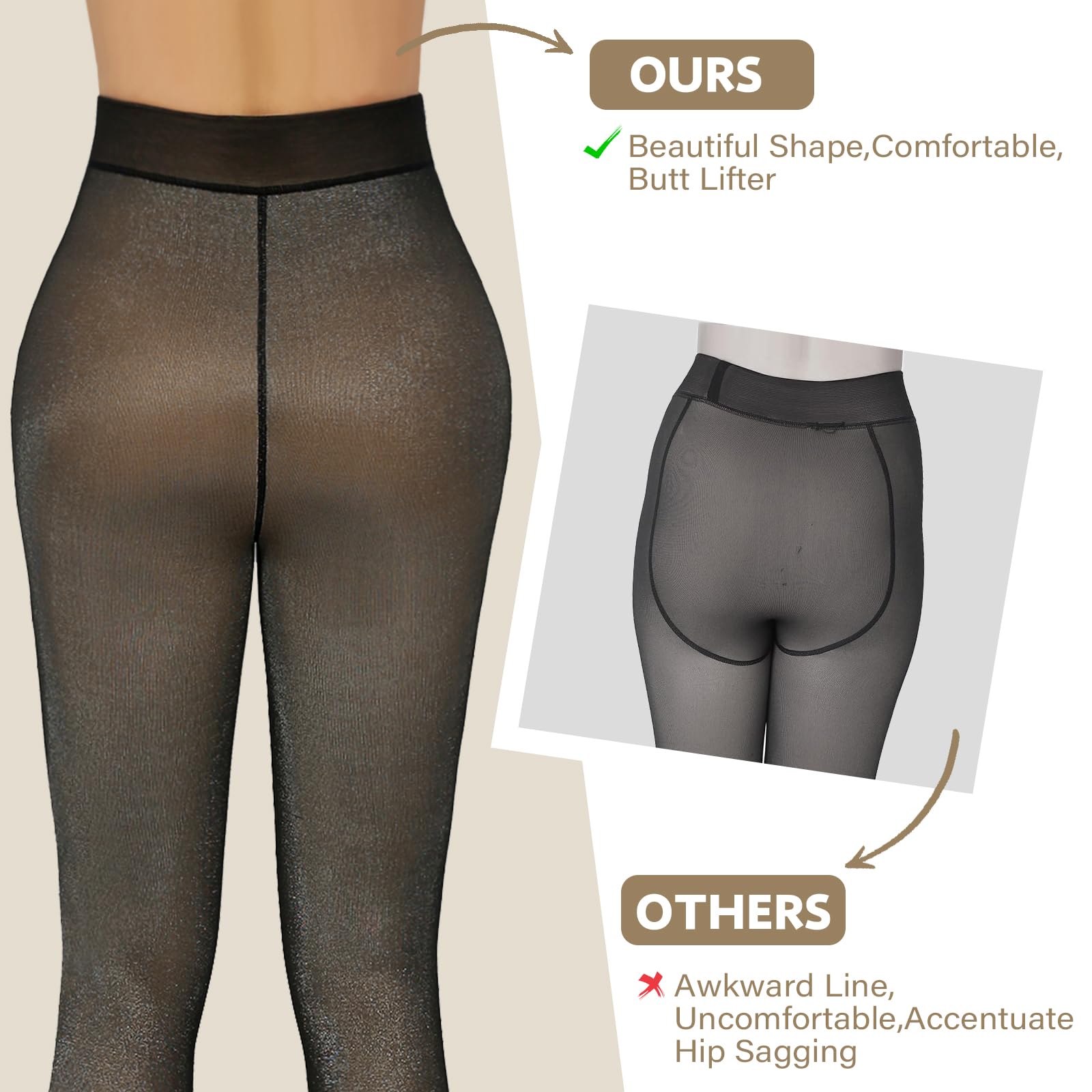 【Fake Translucent pantyhose】:This translucent fleece leggings are fashionable. The winter tights look like a sheer stocking from the outside but fill with warm fleece in the inside.You wear this fake translucent tights in autumn and winter, not only to show your sexy figure, but also to keep you warm.
