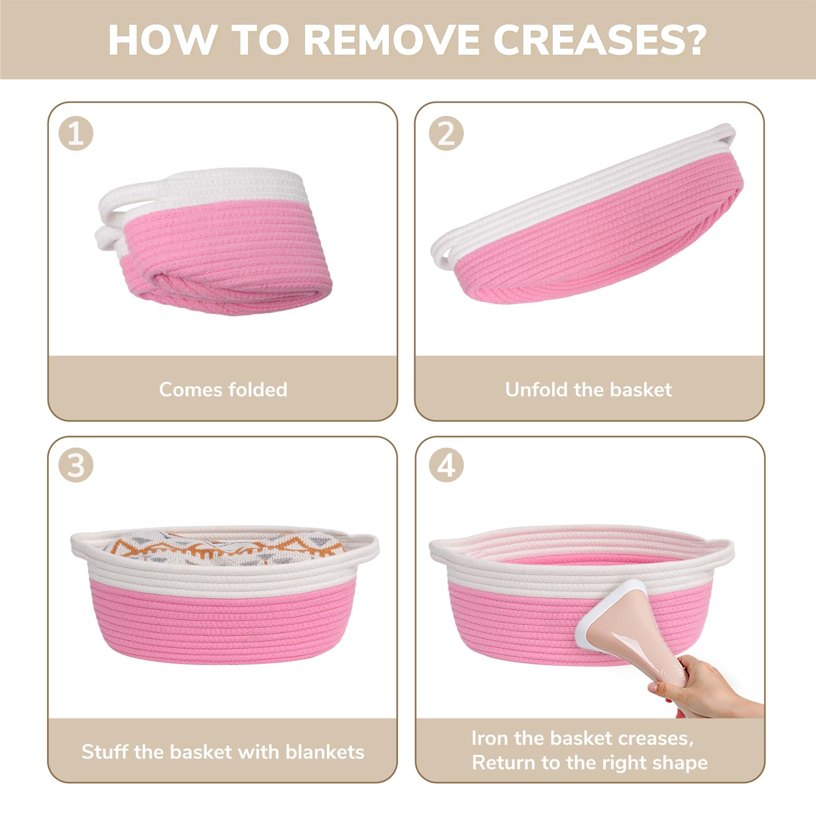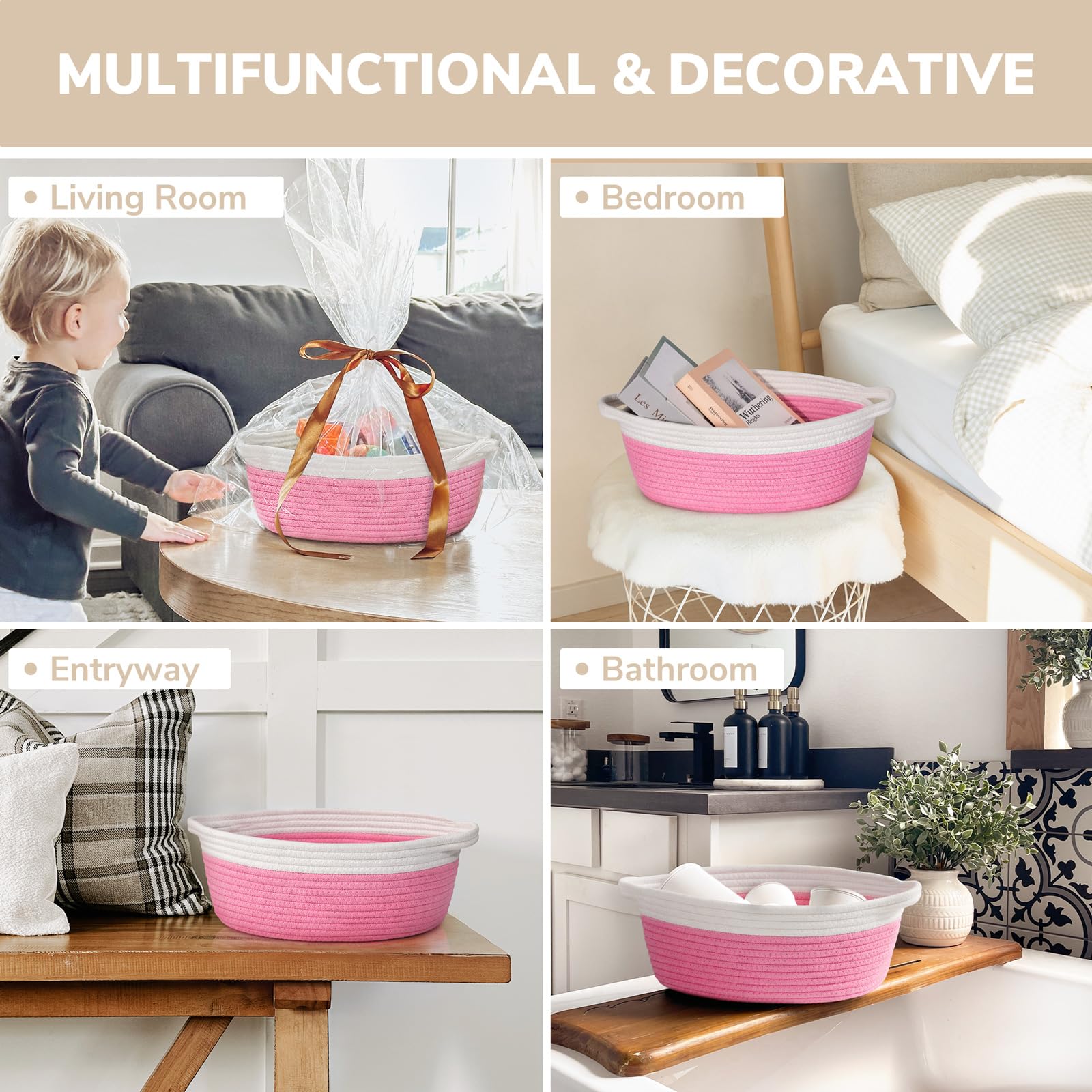 Sturdiness and Durability: Our small basket is made from high-quality cotton rope that will last a long time. Soft to touch, it's the perfect storage solution for families with babies or pets to avoid scratches on clothing or furniture