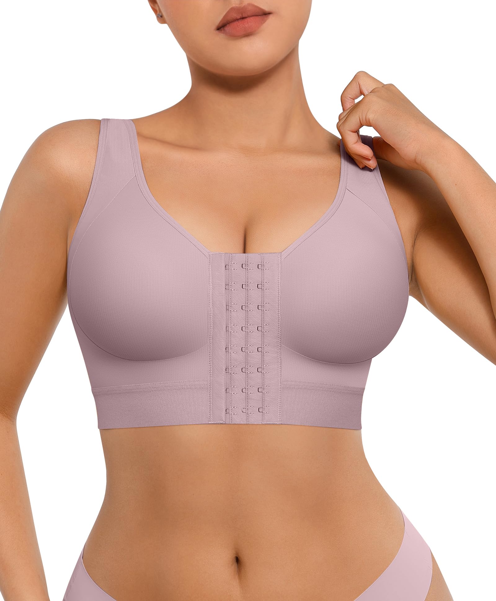 EASY ADJUSTMENT: This women's front closure bra can be adjusted in multiple ways to accommodate various cup sizes, including three rows of hook-and-eye closures in the front and shoulder closures for full adjustability. It is easy to wear, and you can adjust the compression level as needed at any time.