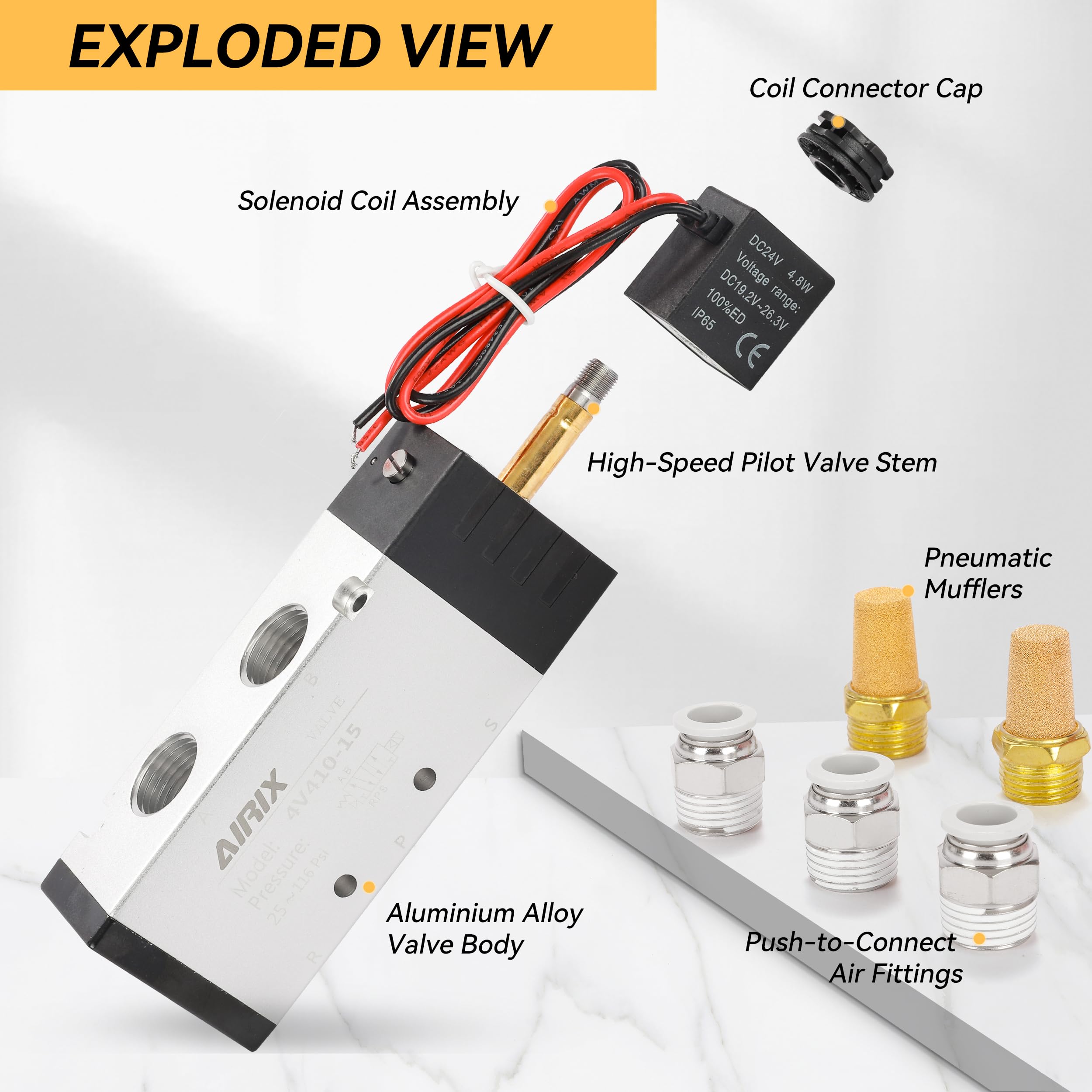 🔹 【Precision Air Control – 4V410-15 Valve】 Designed for pneumatic and automation systems, the AIRIX 4V410-15 solenoid valve offers reliable 2-position 5-way flow control. Ideal for regulating directional airflow in industrial applications with high repeatability.