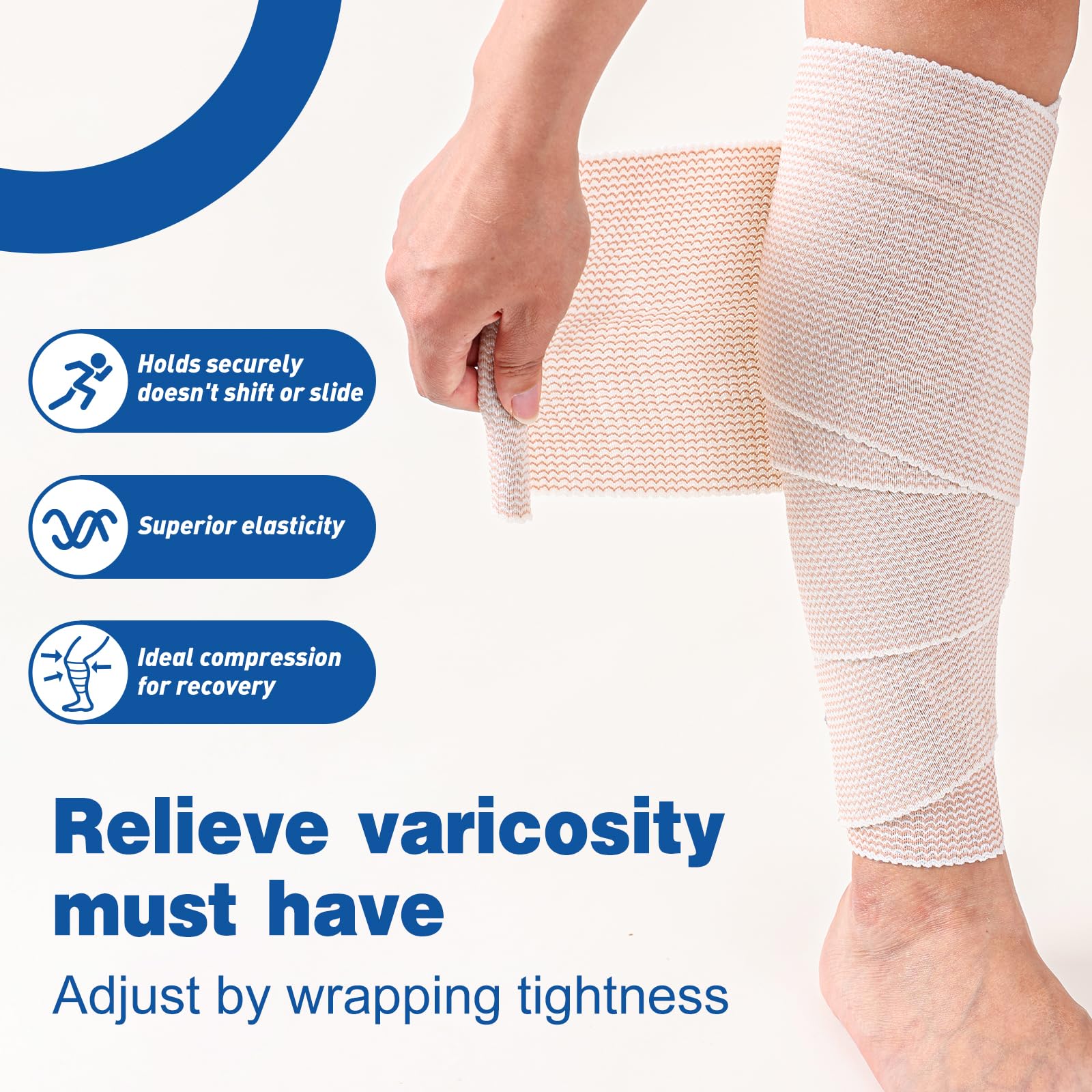 Premium Quality Material: Our elastic bandages are made of high quality, comfortable and lightweight fabrics, which are very friendly to the skin. It breathes your skin, prevents rashes or irritation, and helps to avoid adverse reactions. Latex-Free, very elastic