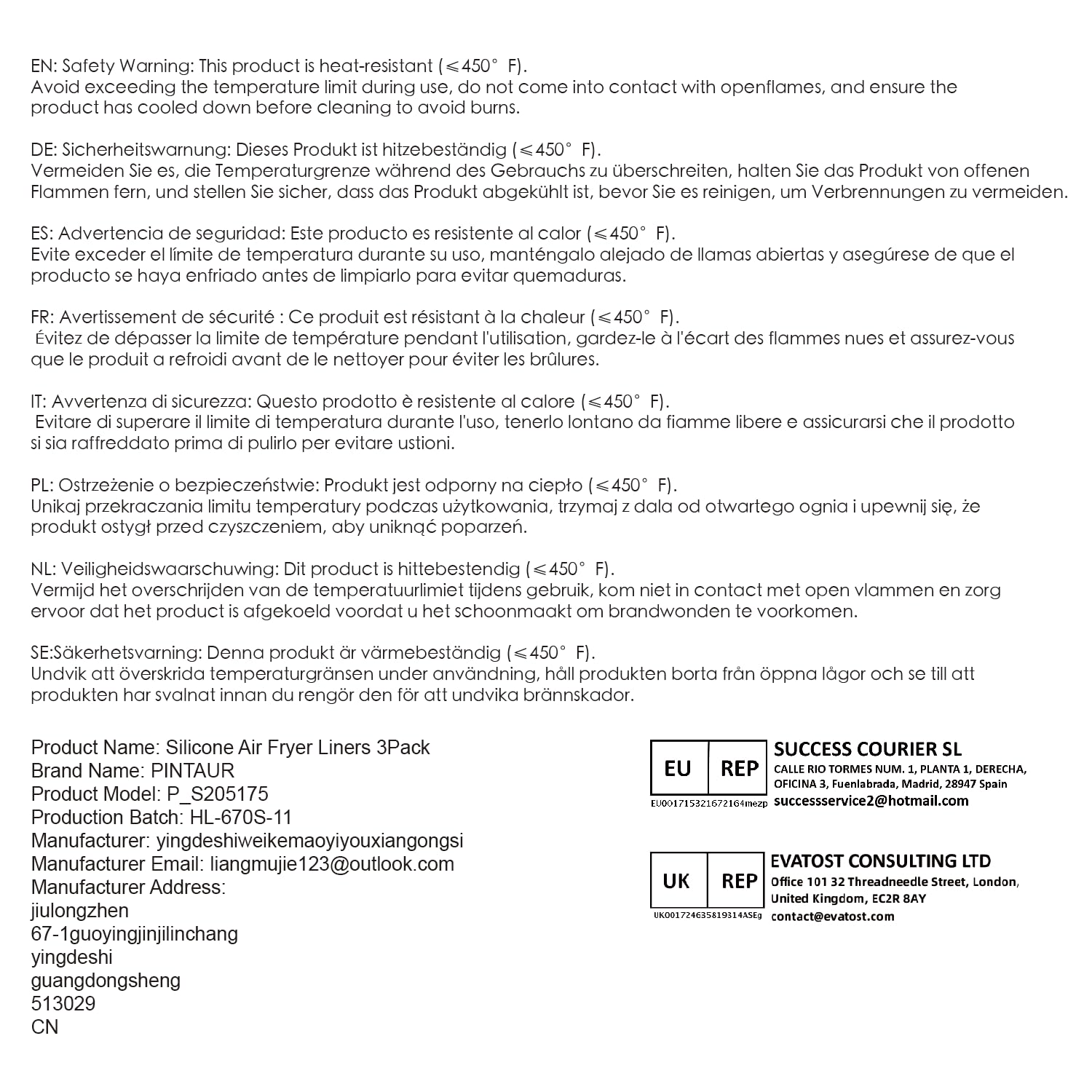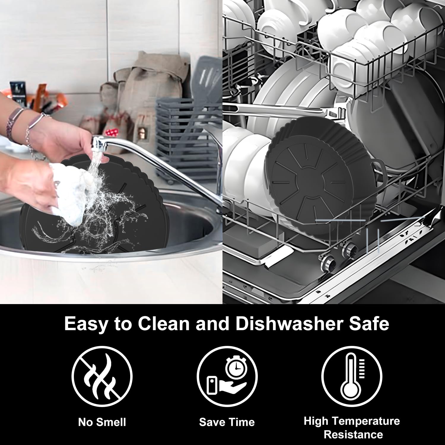 【Food-Grade Silicone Material】The silicone air fryer liner is made from high-quality food-grade silicone, free of BPA, ensuring safety and no odor. Its tear-resistant properties and high-temperature resistance up to 464°F make it more durable and reliable during use.
