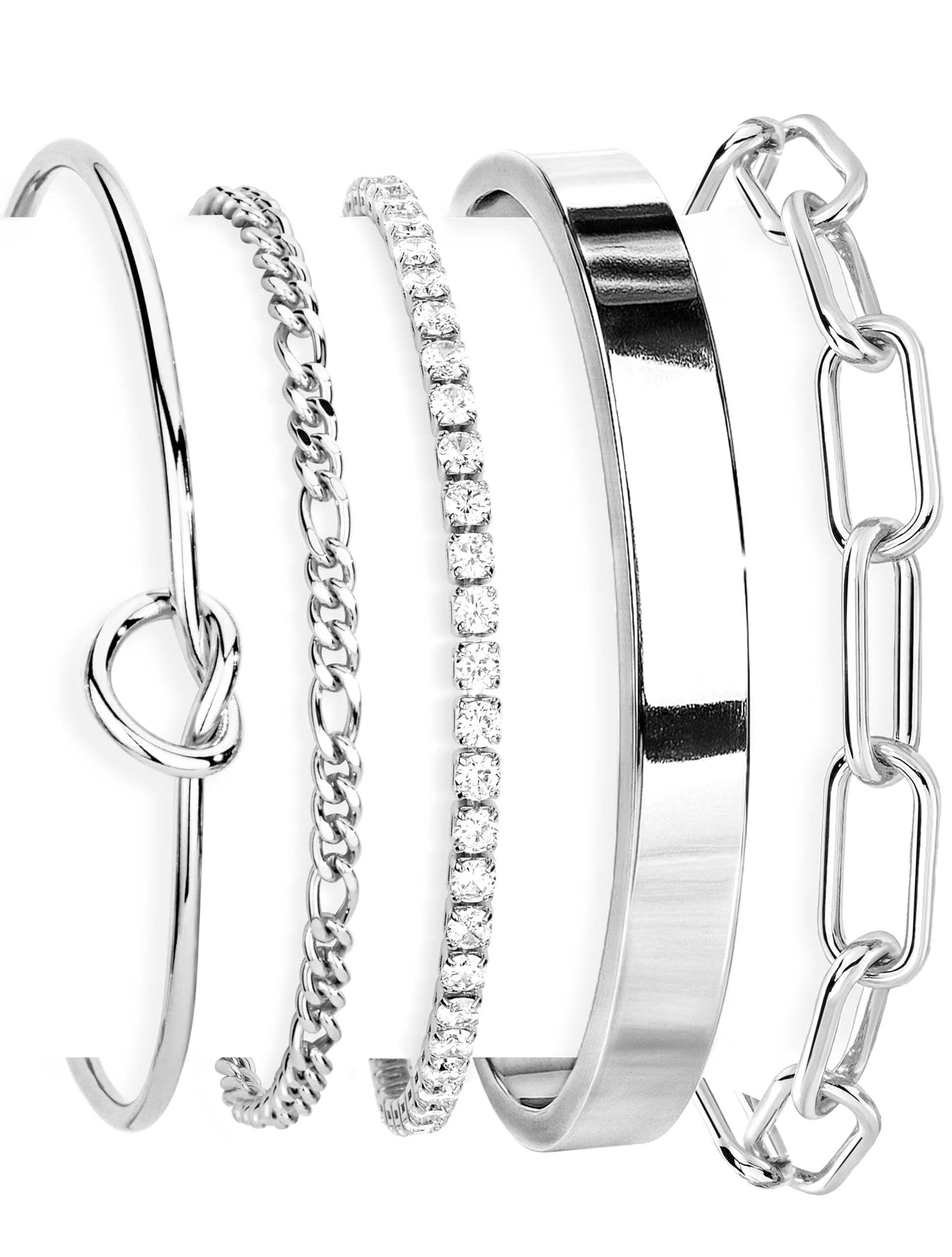 【Dainty&Cute Silver Bracelets for Women】These silver bracelet stack cotains cuban rope bracelet with intricate woven texture, paperclip chain with contemporary minimalist links,adjustable infinity tie knot bangle offering customizable fit.mix-and-match stackables create personalized arm candy combinations.
