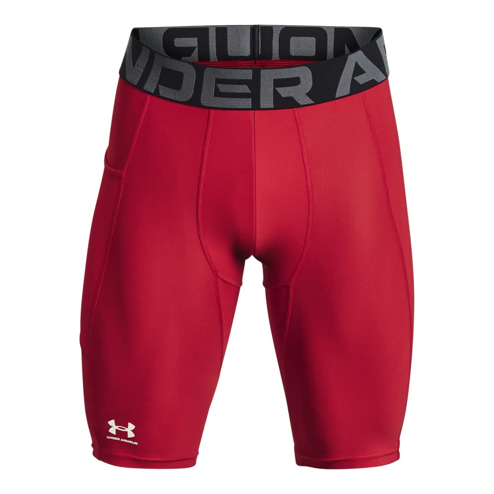 Description HeatGear® Armour is our original performance baselayer—the one you put on first and take off last. So we made it extra comfortable by wicking sweat and stretching so you can move. No athlete can go without it. Super-light HeatGear® fabric delivers superior coverage without weighing you down. Strategic mesh panels for added ventilation where you need it. Material wicks sweat & dries really fast. Ergonomic design keeps seams off high abrasion areas & increases durability. Wide, exposed elastic waistband with wordmark detail. Updated gusset design provides ultimate support & comfort. Drop-in Strength Pocket™ on right side for easy storage. Inseam: 9"". No fly. Compression: Ultra-tight, second-skin fit. 84% Polyester/16% Elastane.