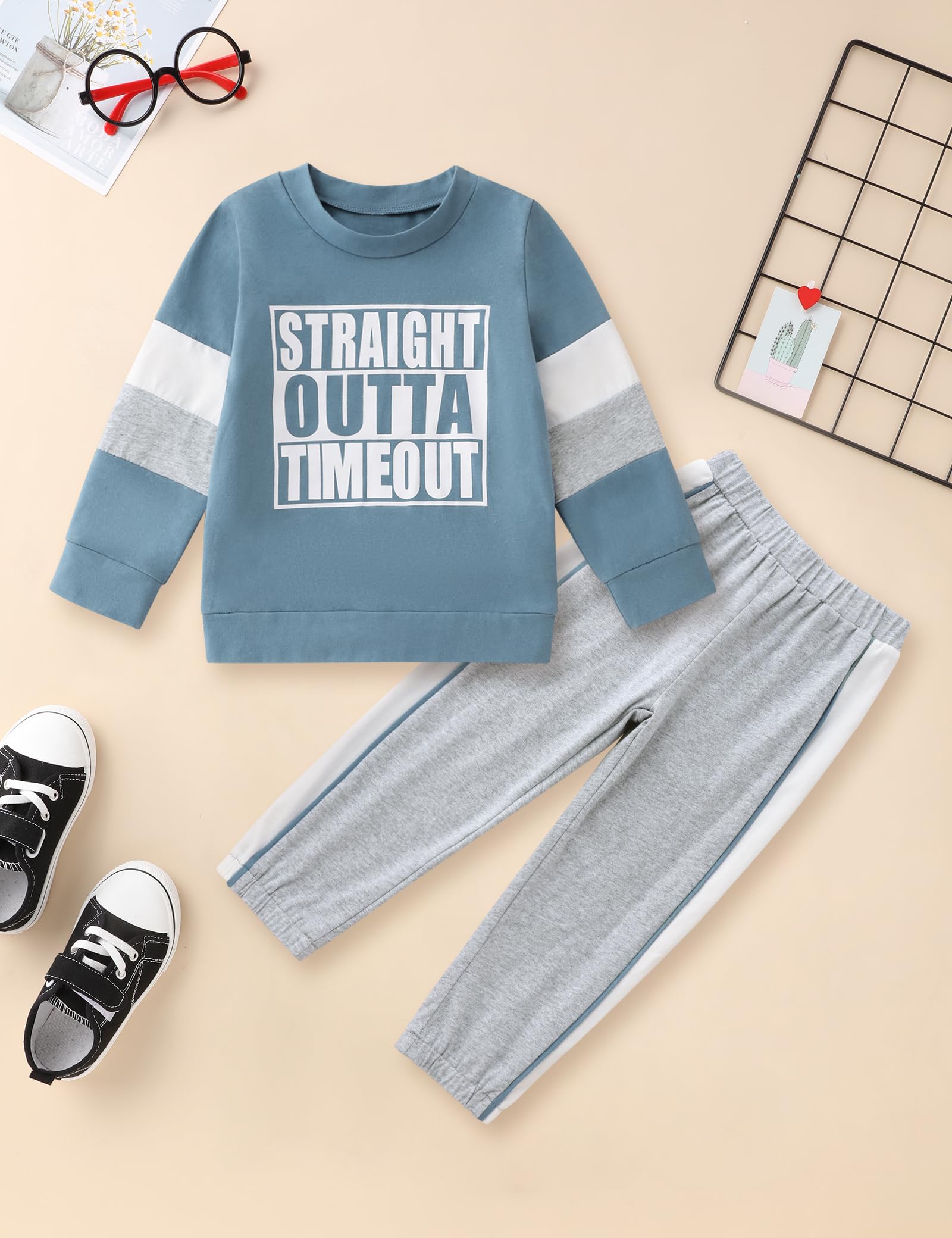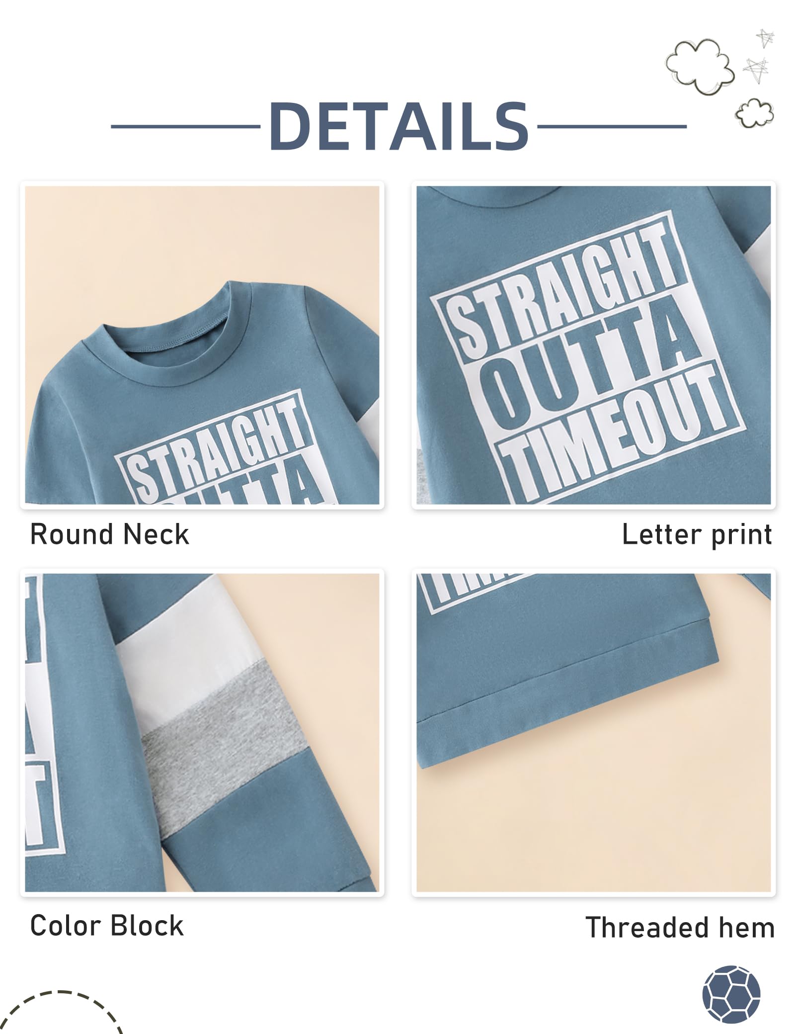 Design: TUEMOS toddler clothes for boys features a trendy letter print and blue block color, giving your little boy a unique look. The long-sleeve crew neck sweatshirt and matching sweatpants enhance coordination, with practical and stylish details,perfect for fall and winter