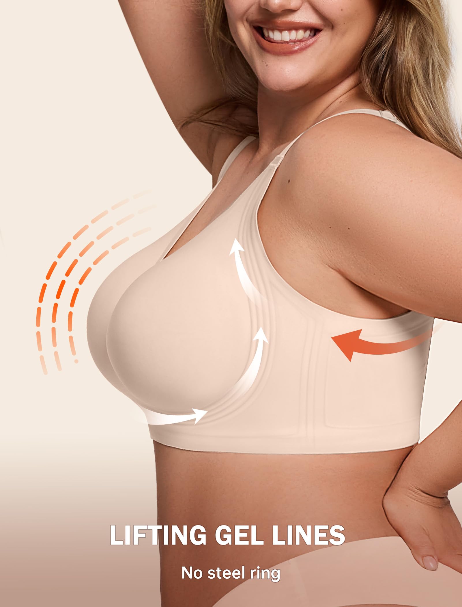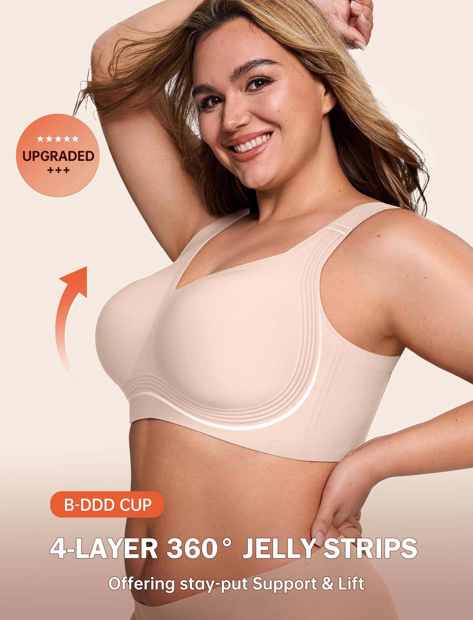 【Upgraded High Supportive Jelly Bras for Women】These wireless bras with support and lift are upgraded with 4-Layer 360° jelly strip support system that enhances your shape and controls bounce. You can even wear the push up bra as sports bras for women.The jelly bra offers all-day comfort, with no wires and no slippage.