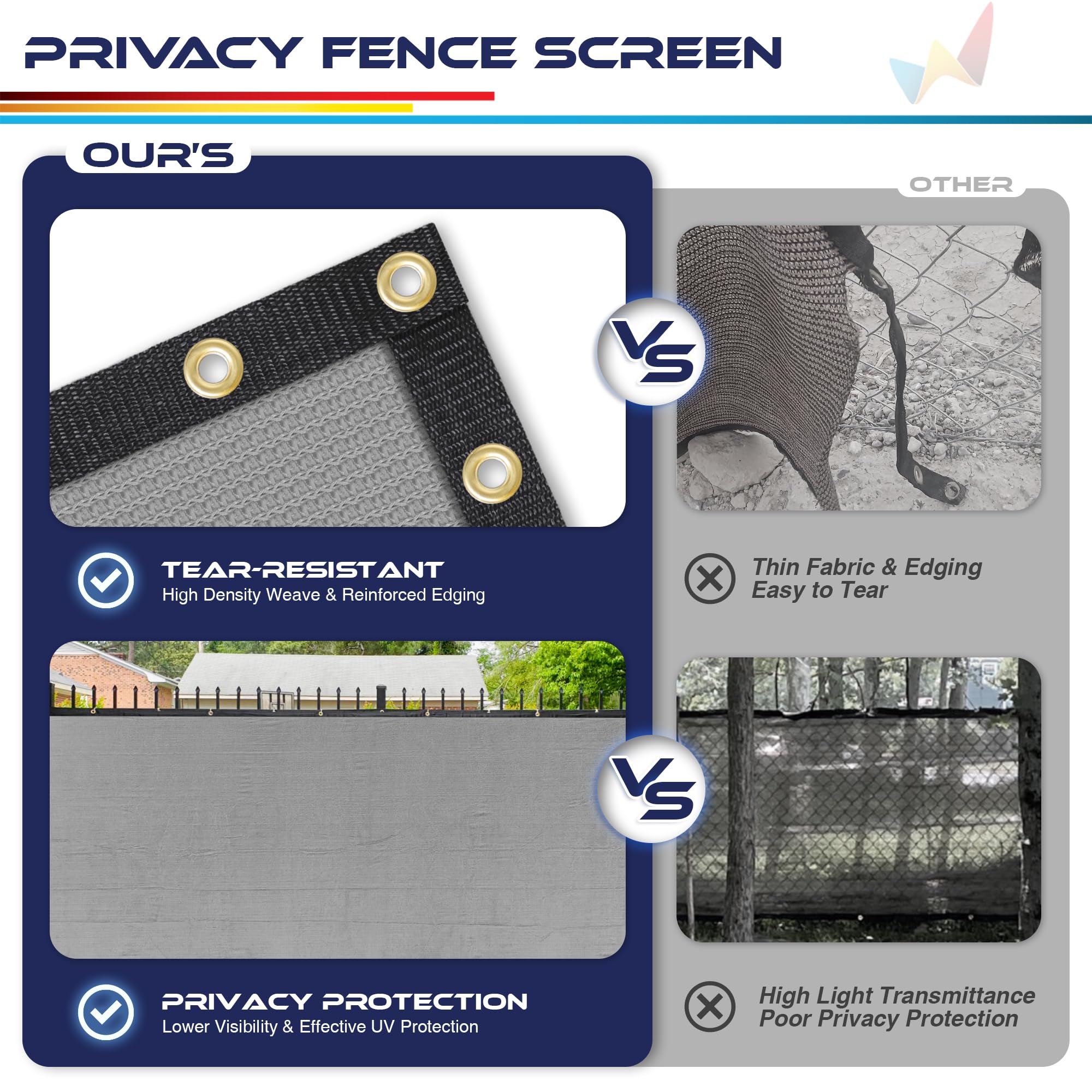 Perfectly Protect Your Yard Privacy: 90% visibility blocking, prevent peeping outside the yard, block nose neighbors see through, protect safety and enjoy freedom. It can also prevent animals from entering your yard, block surrounding noise and street views, block dogs' sight and prevent bark.