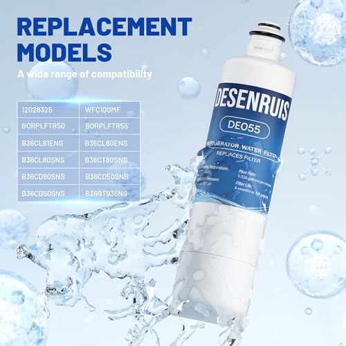 COMPATIBLE MODELS: DESENRUIS Water Filter Replacement Compatible with Bosch Ultra Clarity Pro BORPLFTR50, BORPLFTR55, B36CL81ENG, B36CL80ENS, B36CL80SNS, B36CT80SNB, b36cd80sns, B36CD50SNB, B36CD50SNS, B36BT935NS, B36IT905NP, B20CS30SNS, B30BB935SS,B30IB905SP,B18IF905SP. The manufacturer’s name and part number have been used for reference purposes only
