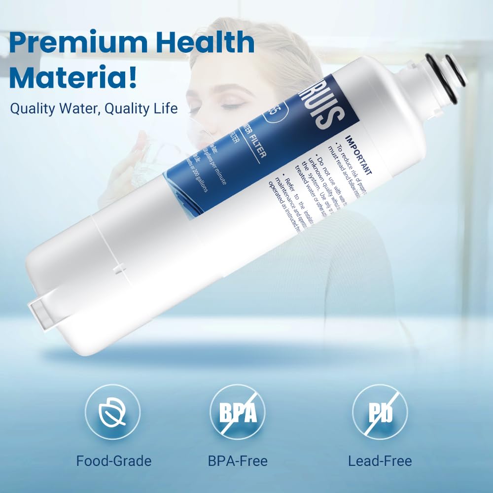 EASY TO INSTALL & LEAK-PROOF: The water filter replacement is designed for hassle-free installation without the need for tools. Featuring a user-friendly design at the top, it's convenient to handle and can be installed in just 3 seconds. Ensuring a secure fit, it guarantees no leaks for worry-free use