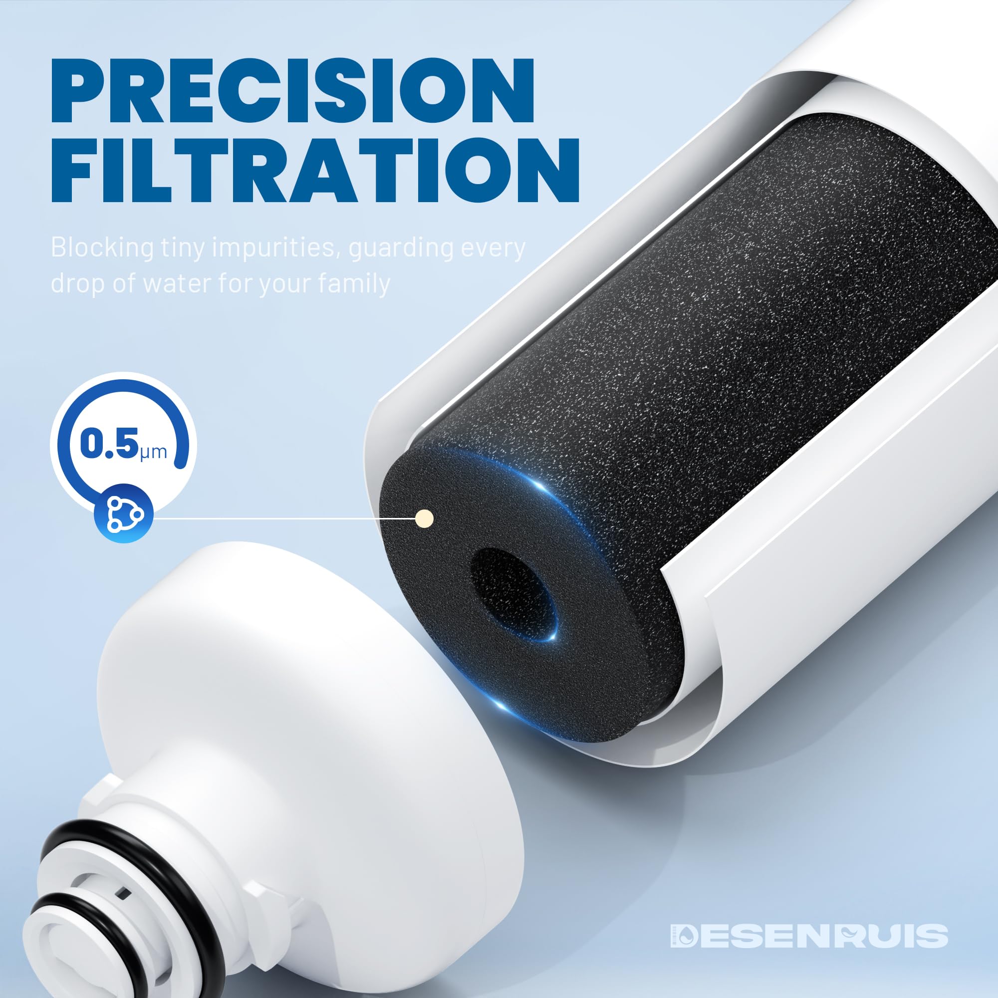 PREMIUM MATERIALS: Crafted with exceptional craftsmanship and rigorous quality control, our water filtration system guarantees top-notch quality. Featuring natural coconut shell carbon blocks with a 0.5 Micron outer layer for superior filtration, it's BPA-free and food-safe, ensuring a safer, healthier drinking experience for you and your loved ones