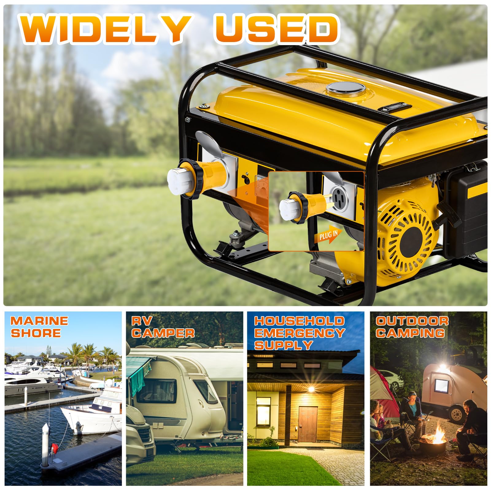 Power RV/Marine/House with 50A Generator: 50A 4 prong RV generator plug NEMA 14-50P(male) end to your 50A ready generator output; Or connect lock SS2-50R (Female) end to your 50A RV power inlet or house's 50A power inlet box (SS2-50P