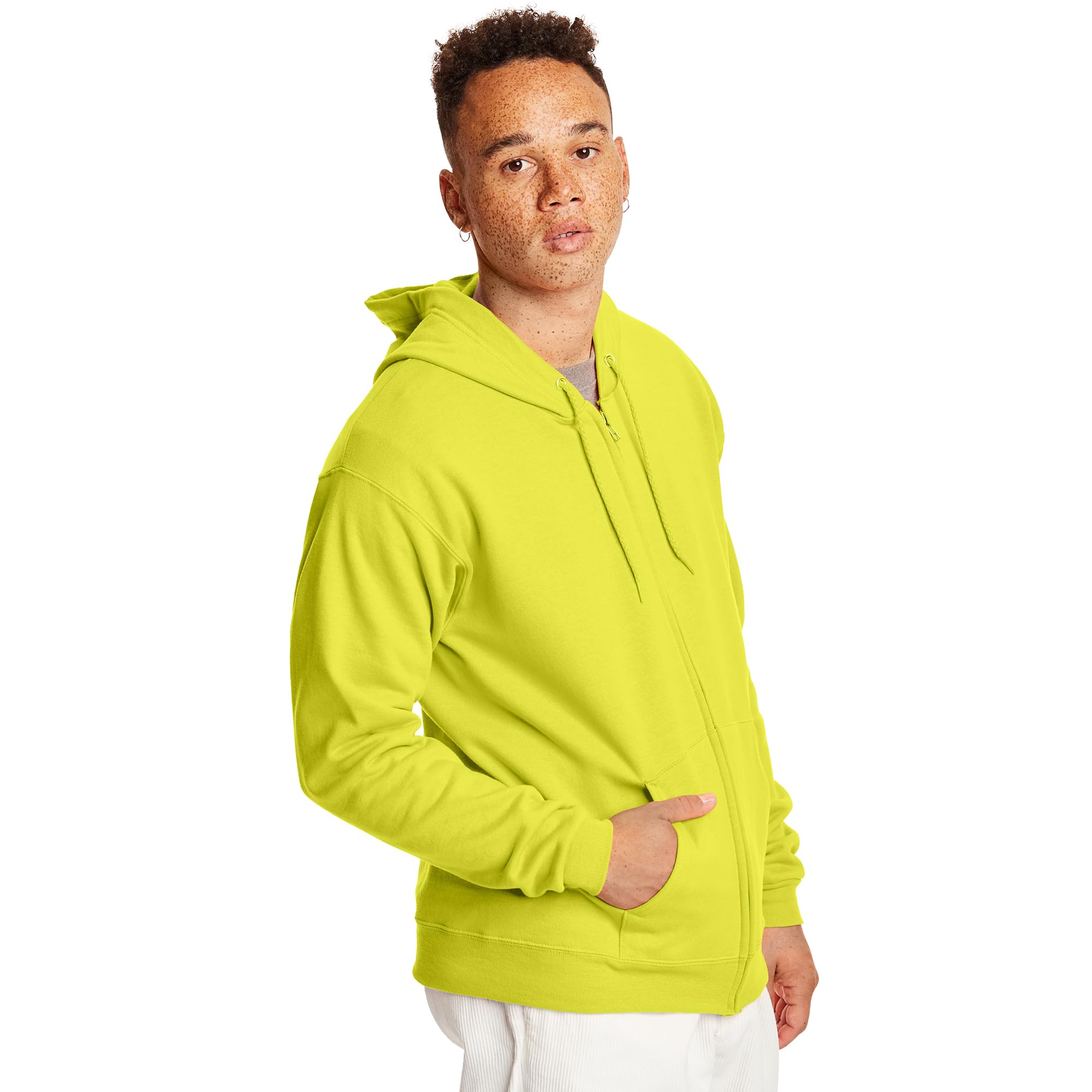 Description Hanes® EcoSmart® fleece is your new go-to wardrobe staple. Soft and plush, this cozy zip-up fleece hoodie is made of a midweight cotton/poly fleece blend that features cotton sourced from American farms. The fleece in this classic zip-front hooded jacket is incredibly soft, thick, and made to keep its warm, cozy feel. And it will hold its shape, thanks to ribbed cuffs and hem. Double-needle stitching at the neck and armhole seams further enhances quality and sturdiness. In classic hoodie style, there's a split kangaroo pocket and a dyed-to-match drawstring at the hood.